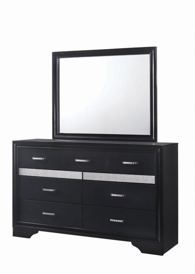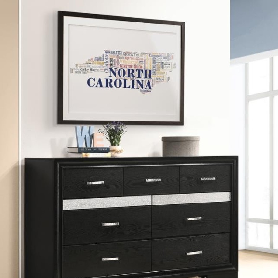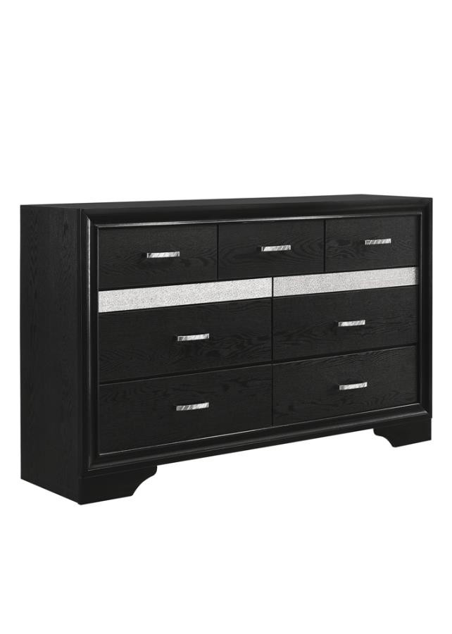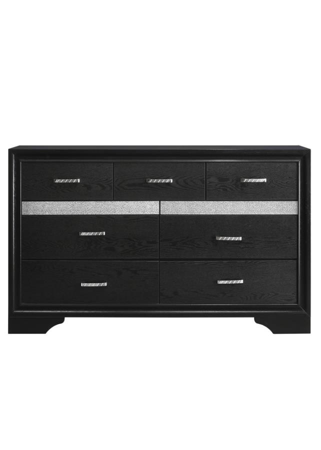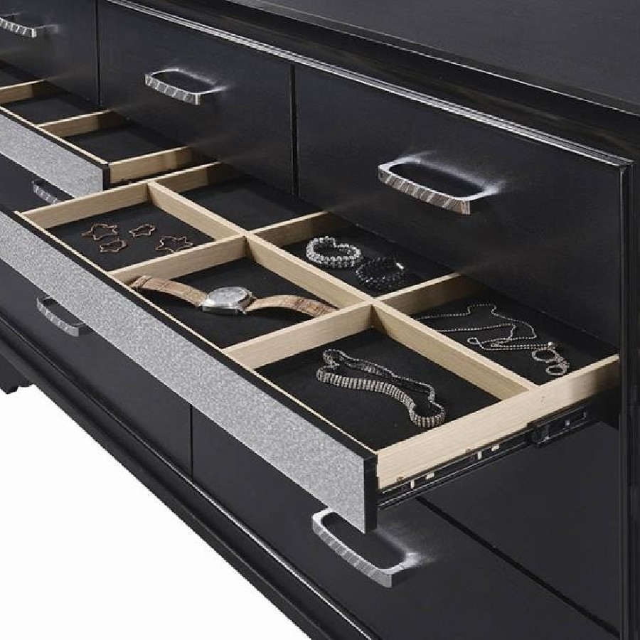 Infuse your space with sophisticated grace. The chic design of this beautiful dresser lends a touch of elegance to any bedroom. Felt-lined drawers keep delicate belongings safe and secure. A hidden jewelry drawer offers a discreet place to store your valuables. Complete with a glittery panel across the front, this piece exudes sparkling opulence.