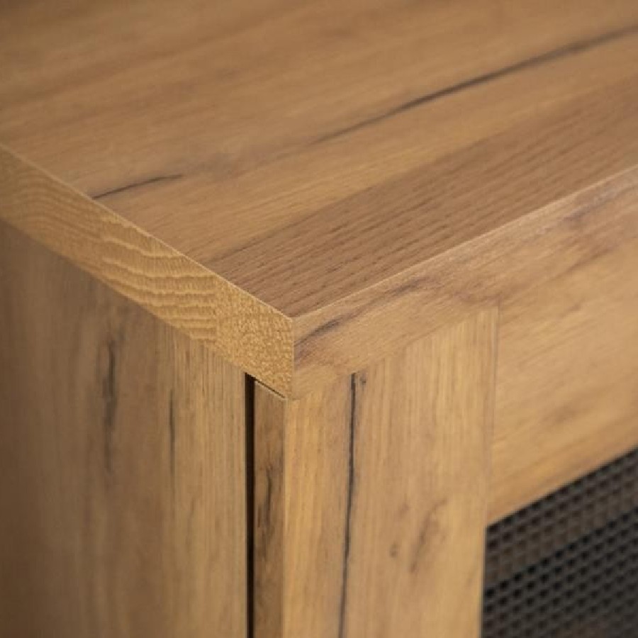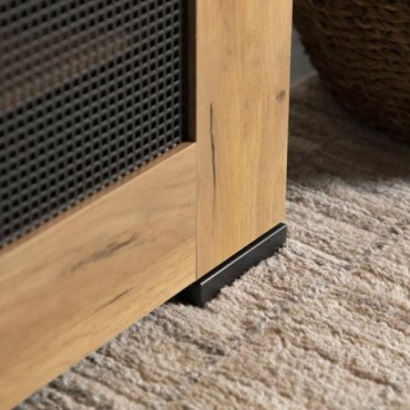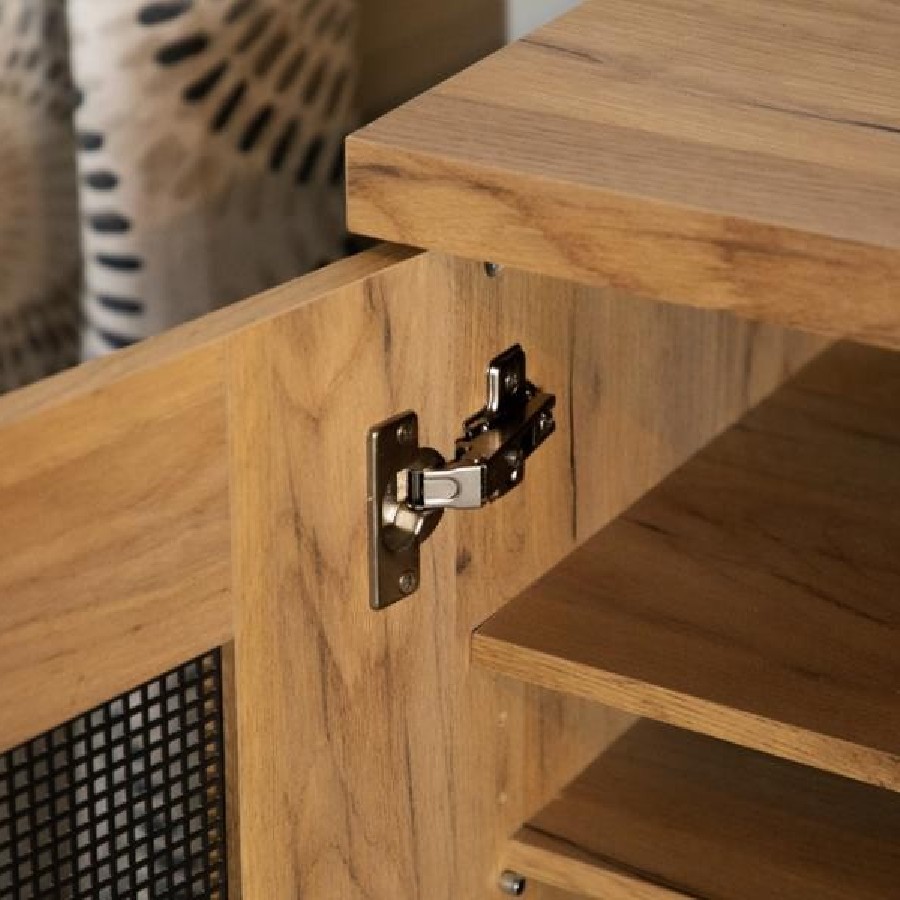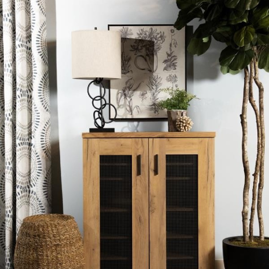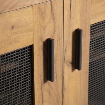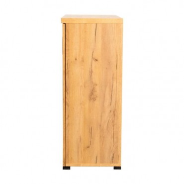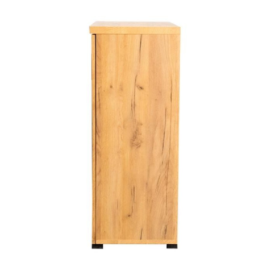 This shoe cabinet blends functional storage with a warm, rustic aesthetic. Crafted from engineered wood with a golden oak wood-look laminate veneer, it offers a natural texture that complements a variety of interiors. The double doors feature mesh-style inserts and modern black handles for a subtle industrial accent. Inside, seven shelves provide generous room for organizing shoes, making this piece ideal for keeping entryways or closets neat and accessible.