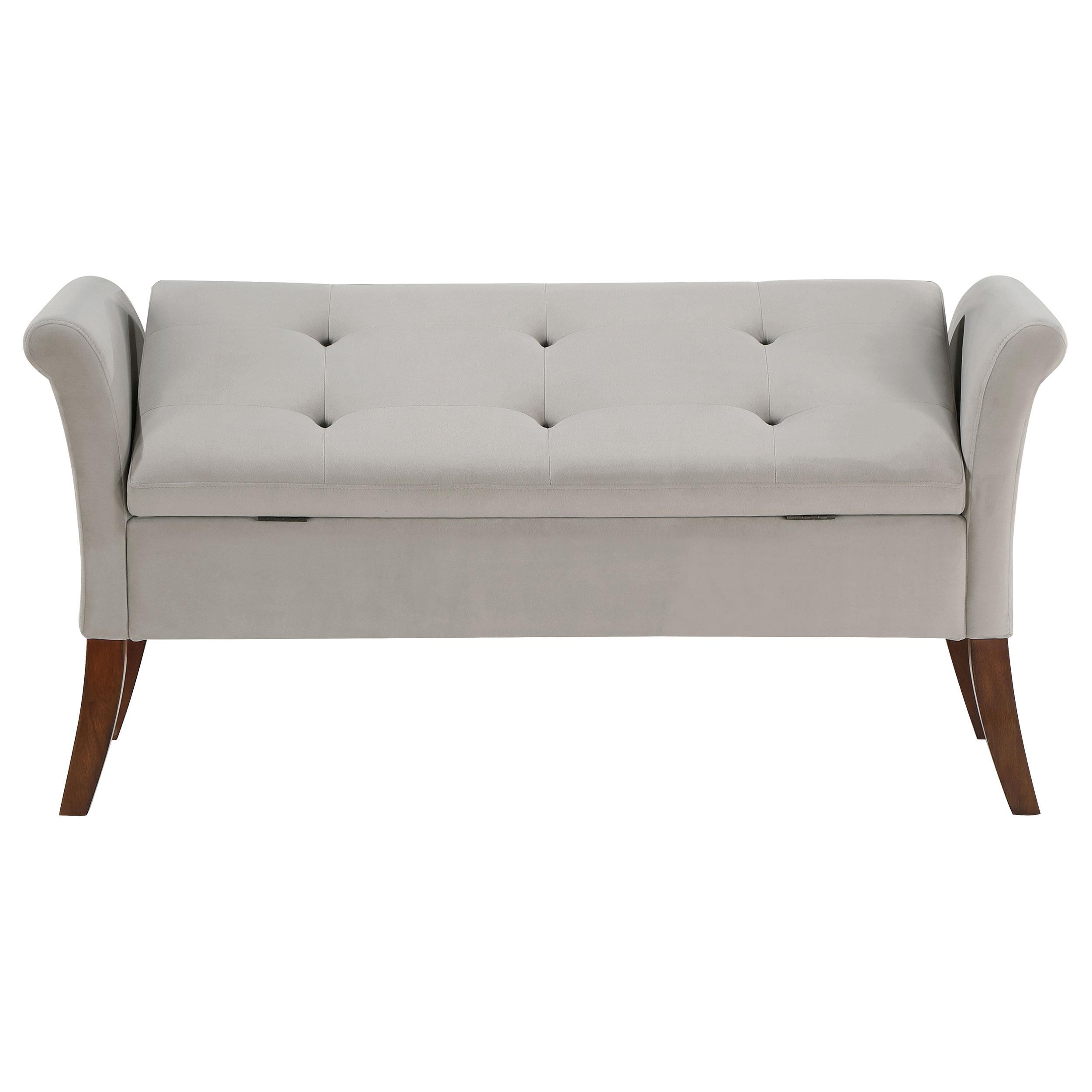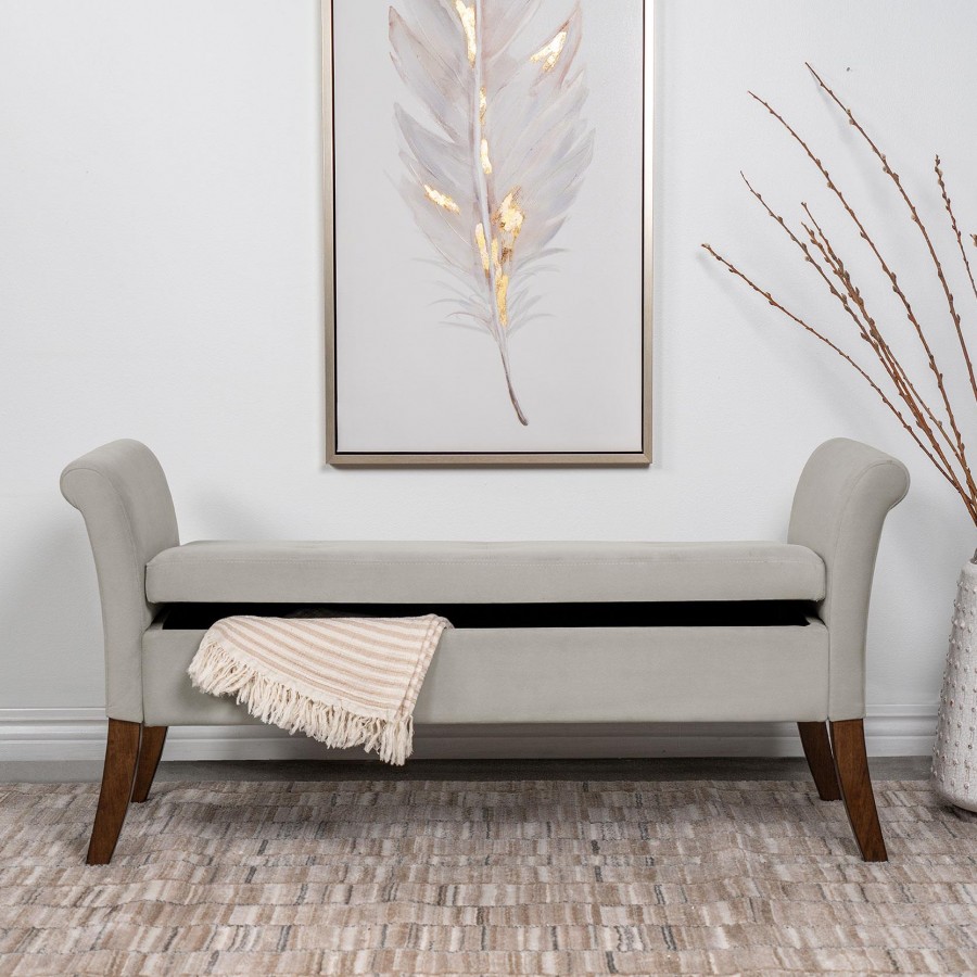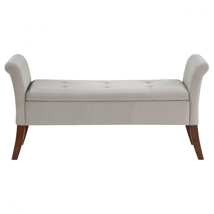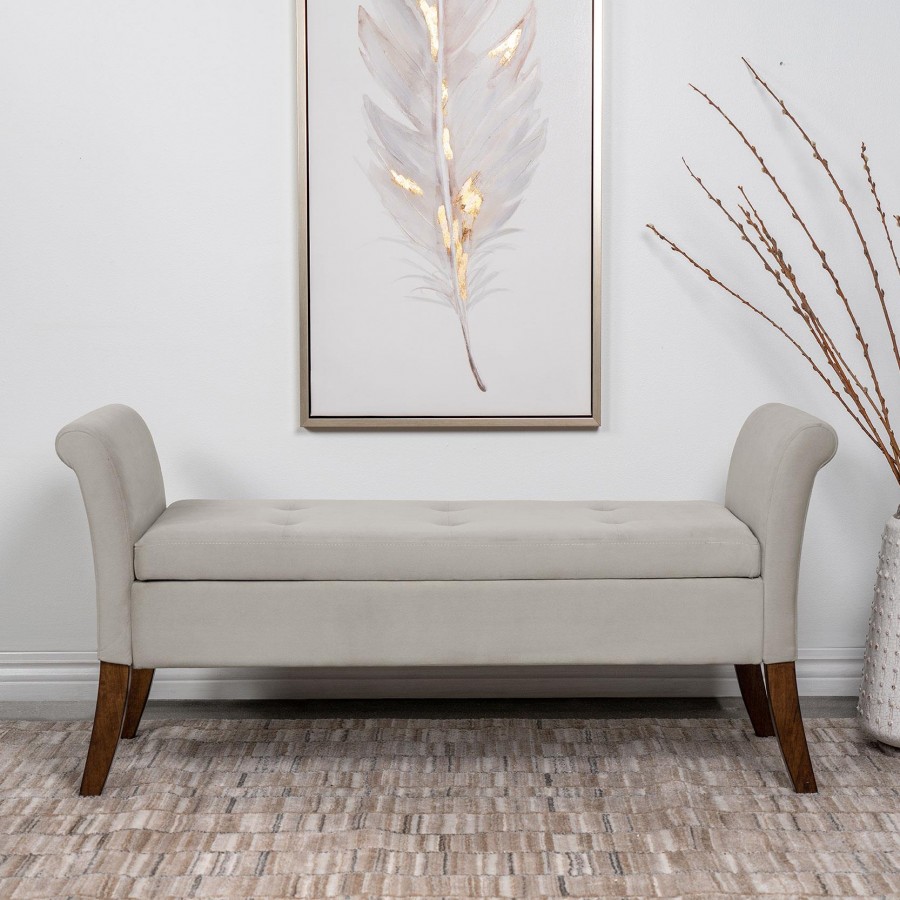 Farrah Velvet Upholstered Rolled Arm Storage Bench Beige