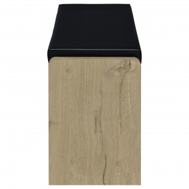 Make your entryway or garage both functional and stylish with this versatile storage bench, designed to keep your space organized. Featuring a foam cushion upholstered in sleek black faux leather, this bench offers a comfortable seat while you put on or take off your shoes. The engineered wood frame, finished with an eco-friendly laminate, offers durability with a modern appeal. The storage includes a pull-out drawer, an adjustable shelf, and an open compartment, perfect for organizing shoes, bags, or other essentials. This bench ensures all your entryway necessities are easily accessible.