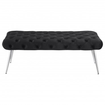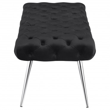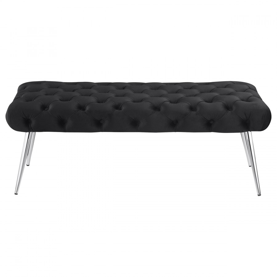 Ella Upholstered Tufted Bench Stainless Steel Legs Black