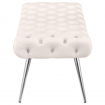 Ella Upholstered Tufted Bench Stainless Steel Legs Ivory
