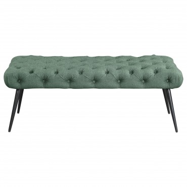 Enhance your living area, bedroom, or entryway with this sophisticated bench, skillfully blending timeless tufting and plush upholstery for a luxurious look and feel. Its meticulous button-tufted top adds depth and dimension, while slender metal legs provide stable support and a touch of modern refinement. Designed to complement various interiors, this versatile piece can function as extra seating, a footrest, or a decorative accent, effortlessly elevating your home’s ambiance.