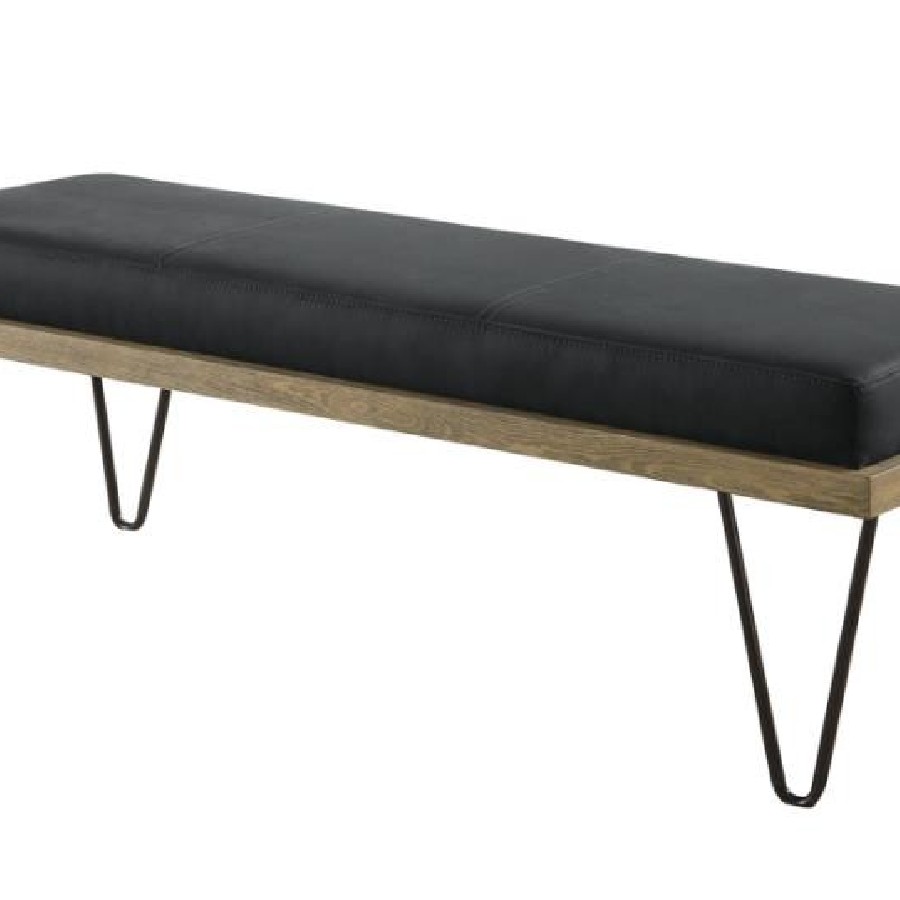 Accessorize a casual space in charming style. This bench provides utility as a seating venue as it snazzes up the carefree elegance of a transitional room or entryway. Retro-look hairpin legs support a dual-layer seat. Dark blue denim upholstery creates a dynamic look that's versatile and stylish. This eye-catching bench is an ideal complement to a fresh, invigorating mid-century scheme.