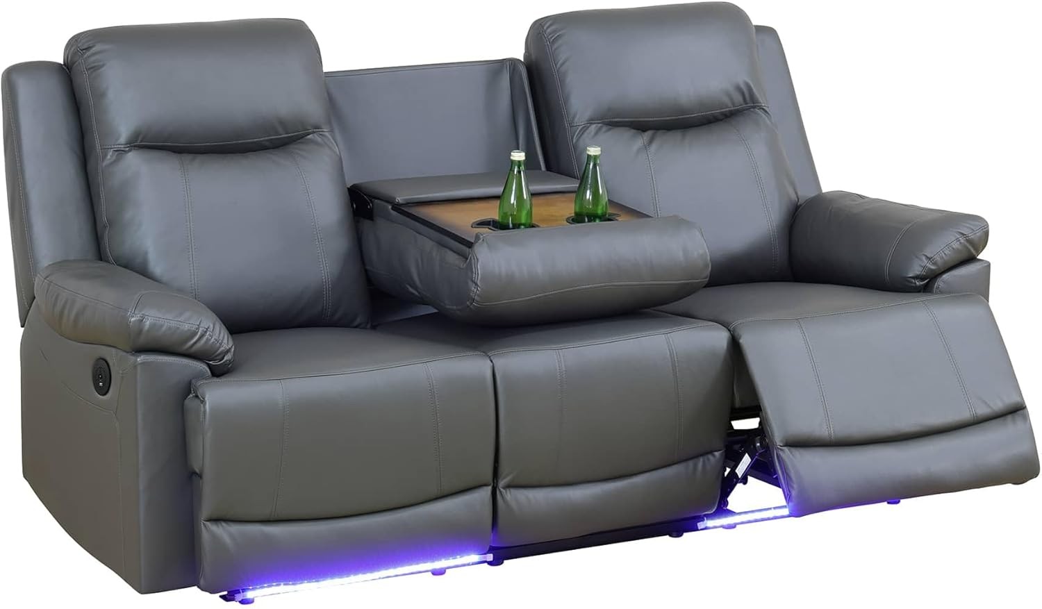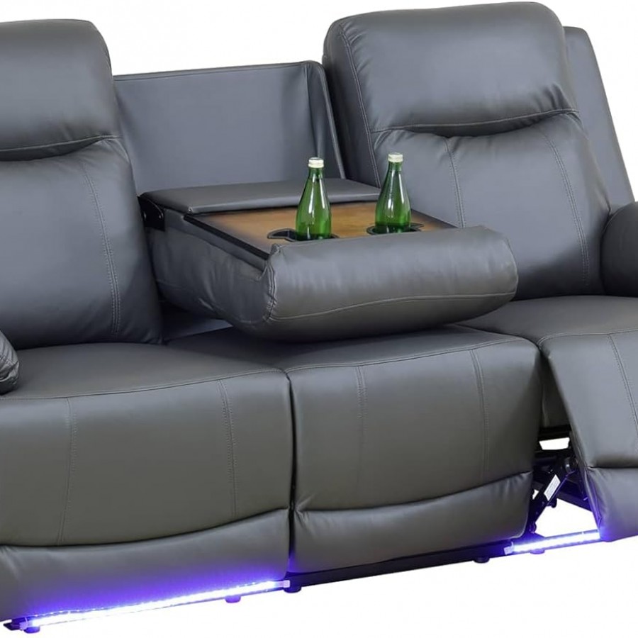Breathing Leather Recliner Sofa Set, 3-Piece Living Room Furniture with 3-Seat Sofa, Loveseat & Single Chair, Modern Comfortable Reclining Couch Set for Home