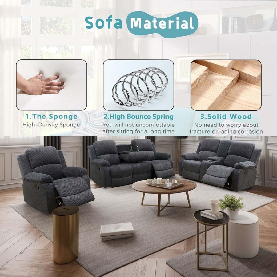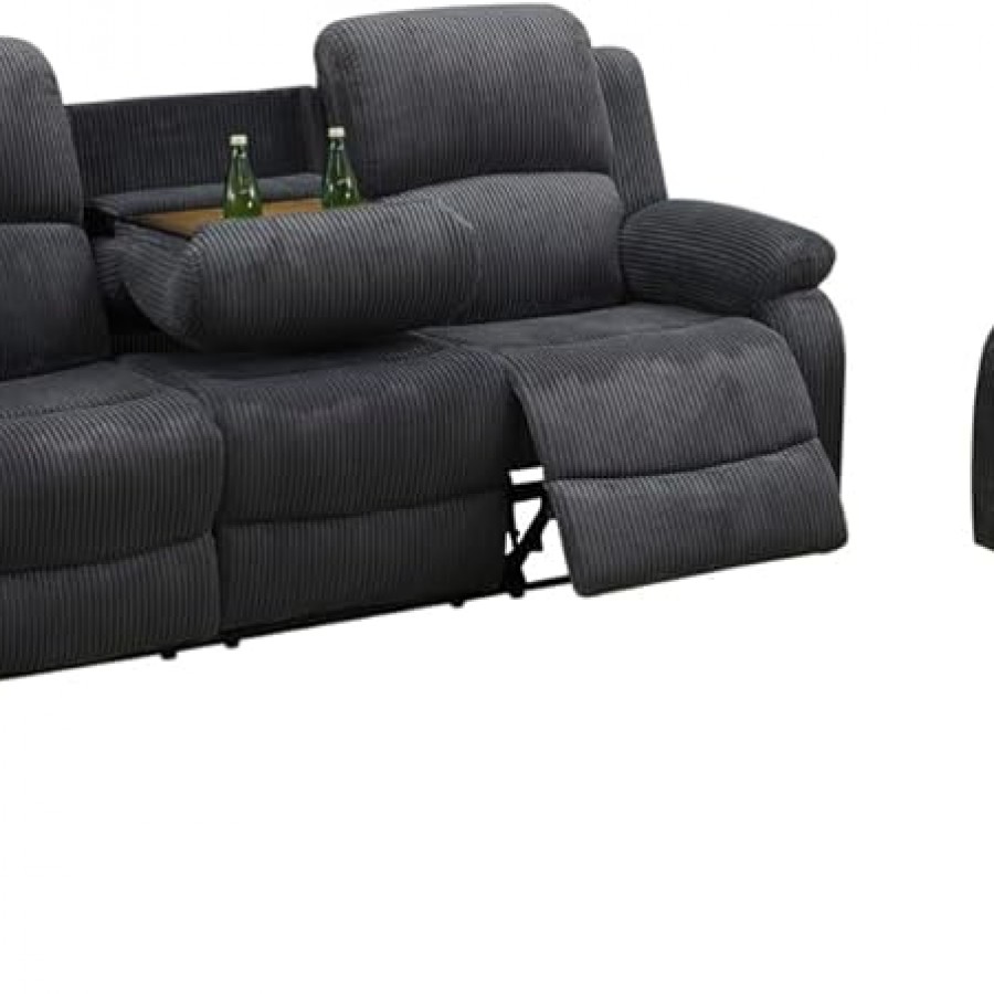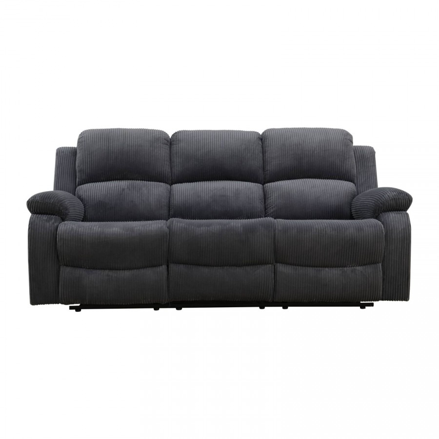 Dark Grey Corduroy 3-seat Living Room Recliner Sofa