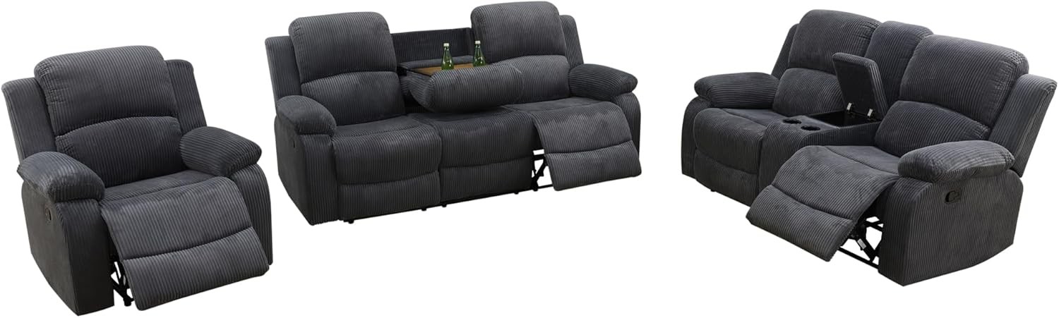 GS2898--Dark Grey Corduroy 3PC Recliner Set