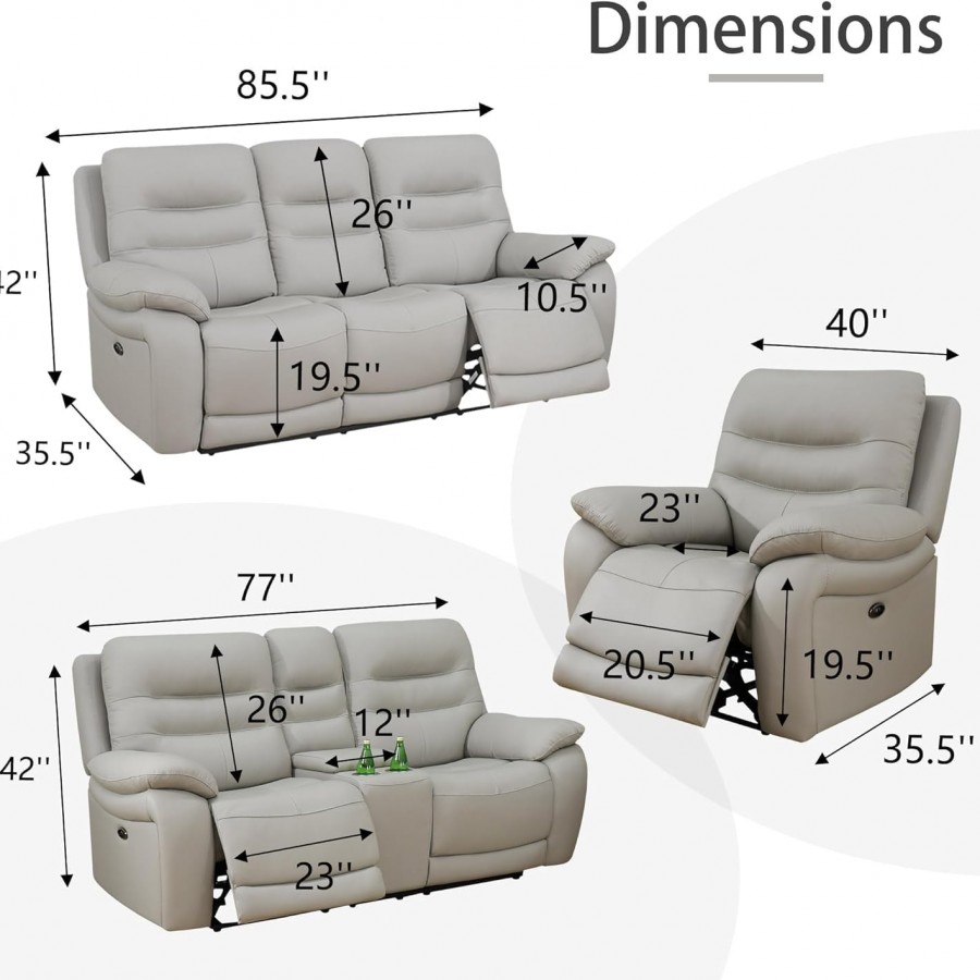 • DESIGN FOR CONVENIENCE: Experience ultimate relaxation with our power reclining sofa set. Effortlessly adjust your seat to the perfect position with the touch of a button. Our recliner couches for living room offers versatile arrangement options to perfectly fit your living room, home theater, or entertainment space.