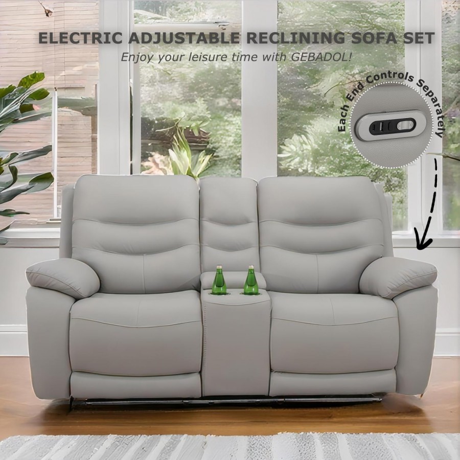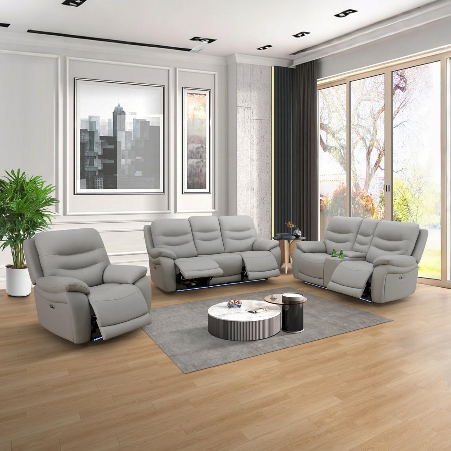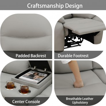Power Recliner Sofa Set, Breathable Leather Couch Reclining Living Room Sectional Sofa, Recliner Sectional Sofa Set with Cup Holders/Storage Console/USB Ports (Grey)