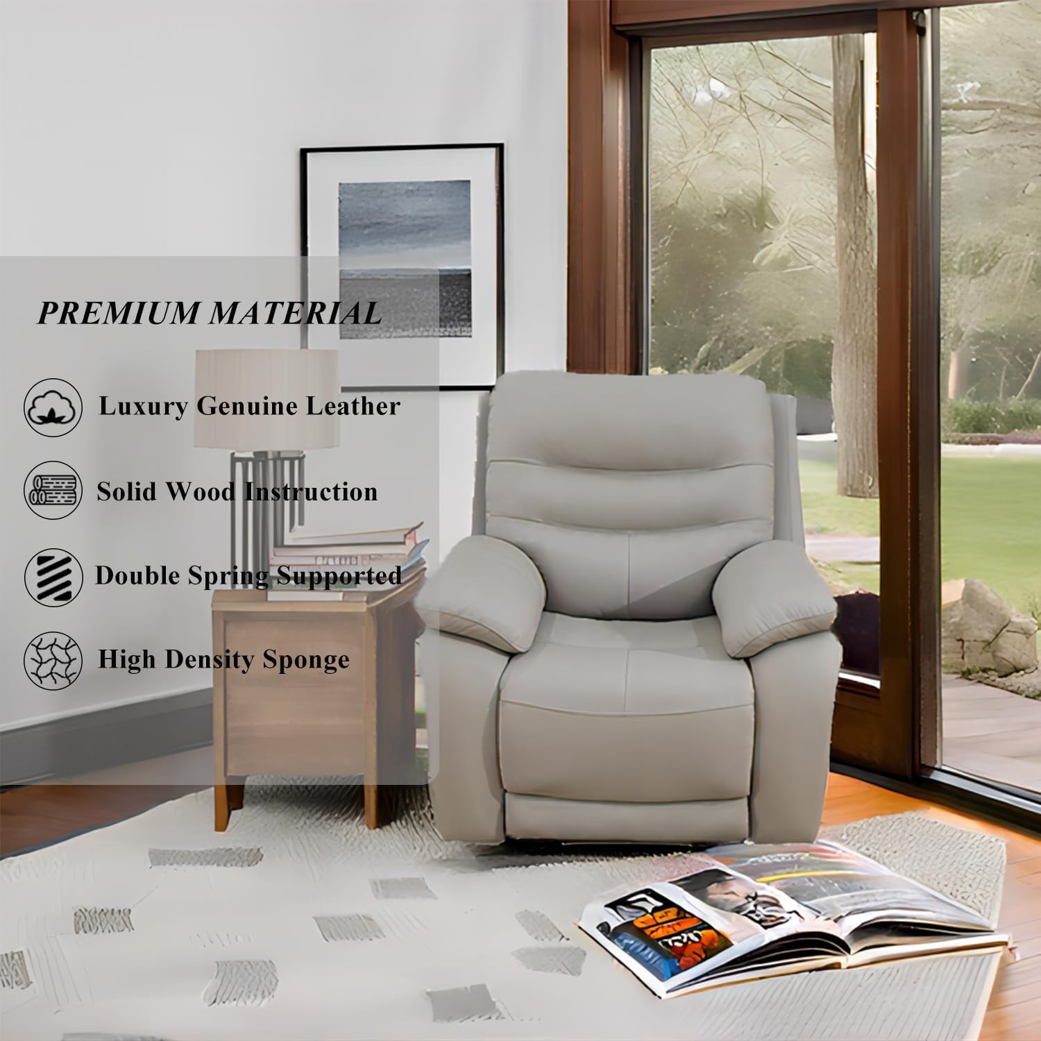• BUILT TO LAST: The leather reclining sofa set features a sturdy solid wood frame for enhanced durability and stability. It's padded with a combination of high-quality cotton and dual springs for superior comfort and resilience that won't sag over time. The soft breathing leather upholstery is easy to clean and maintains its luxurious look.