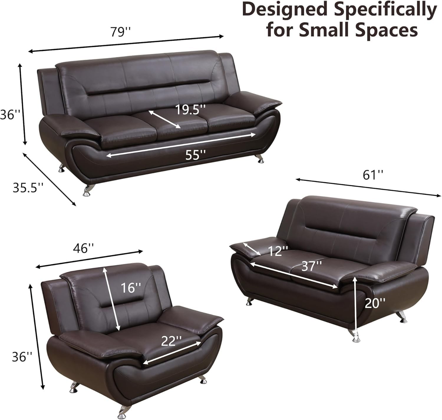 •  Modern Living Room Couch Set (loveseat + sofa + chair) elevate your home's aesthetic with a modern design that features clean lines and tufted details. Modern sofa set for living room is expertly scaled to fit most apartments, office and mid-sized living rooms.