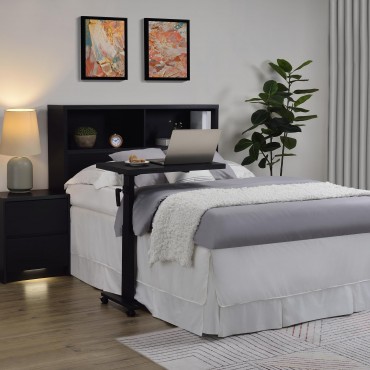 Organize your bedroom essentials with this bookcase headboard in a finish that matches any decor. Featuring two spacious open compartments, it offers convenient storage for books, décor, and personal items. Built from sturdy engineered wood and finished with a scratch-resistant laminate veneer, this headboard combines durability with style. Its versatile design adds a rustic charm to any bedroom while optimizing storage in small spaces.