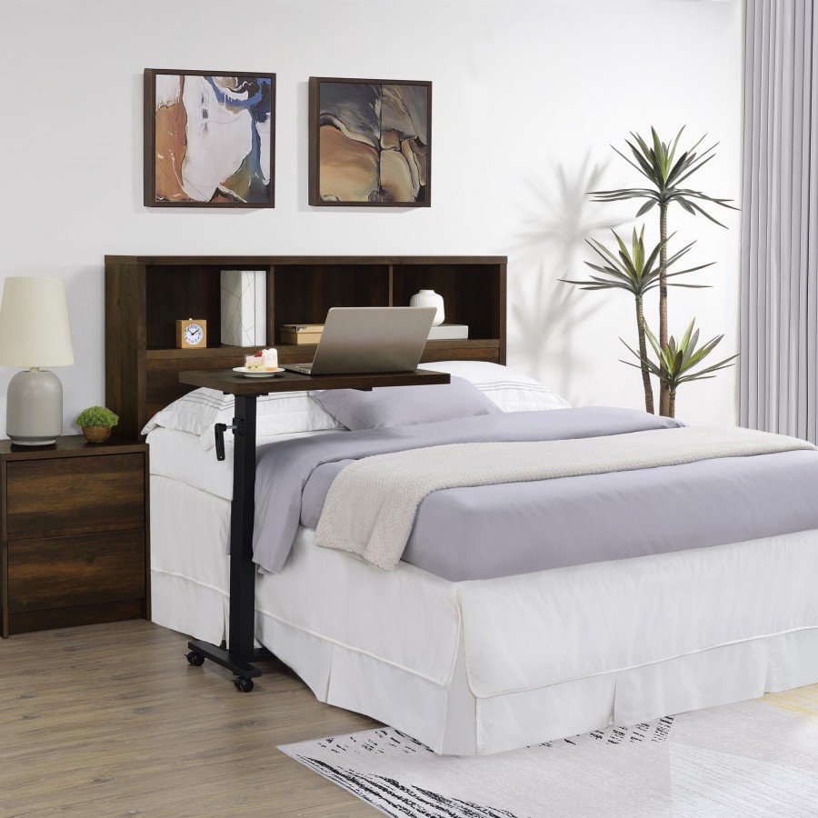 Organize your bedroom essentials with this bookcase headboard in a finish that matches any decor. Featuring three spacious open compartments, it offers convenient storage for books, décor, and personal items. Built from sturdy engineered wood and finished with a scratch-resistant laminate veneer, this headboard combines durability with style. Its versatile design adds a rustic charm to any bedroom while optimizing storage in small spaces.