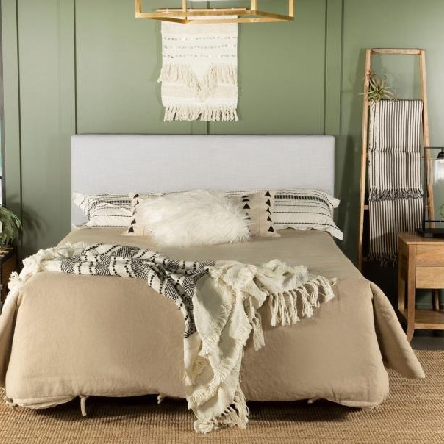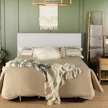 Elevate your bedroom with the refined simplicity of this upholstered panel headboard. Wrapped in softly textured sand fabric, it features a clean-lined rectangular silhouette softened by smooth edges for a tailored look. Foam cushioning provides comfort and structure, making it as inviting as it is stylish. Designed to blend effortlessly with a wide range of bedding styles, the headboard is supported by a durable frame crafted from pine wood and plywood, offering reliable strength and lasting use.