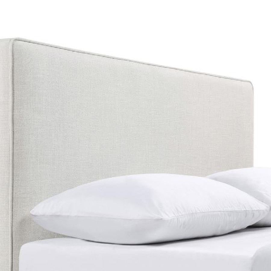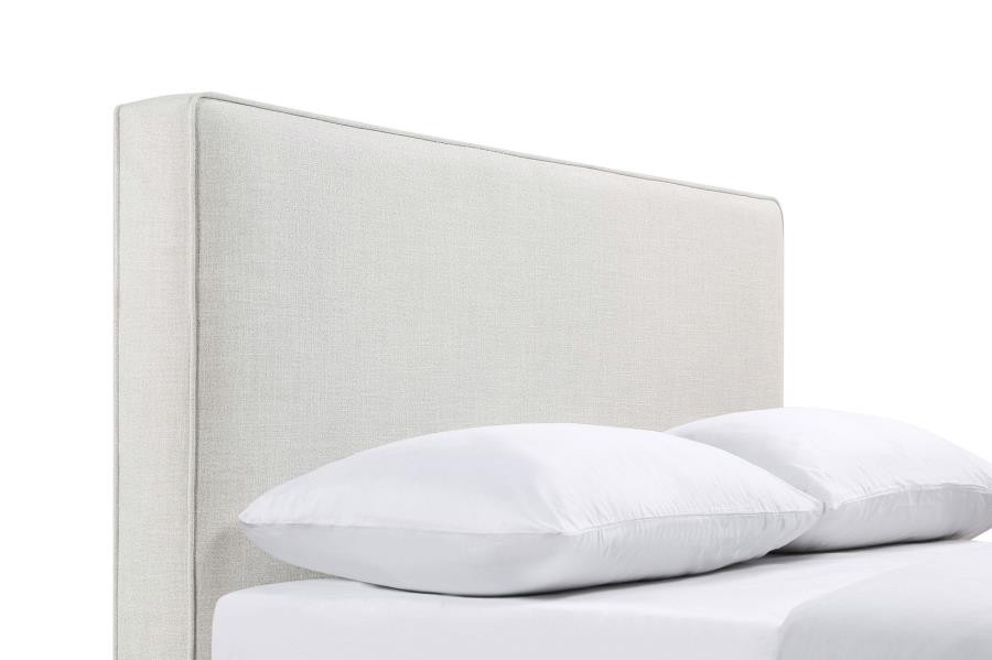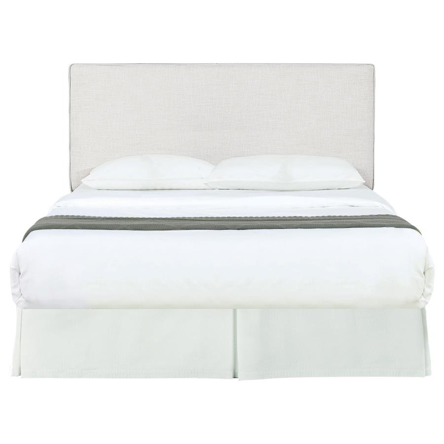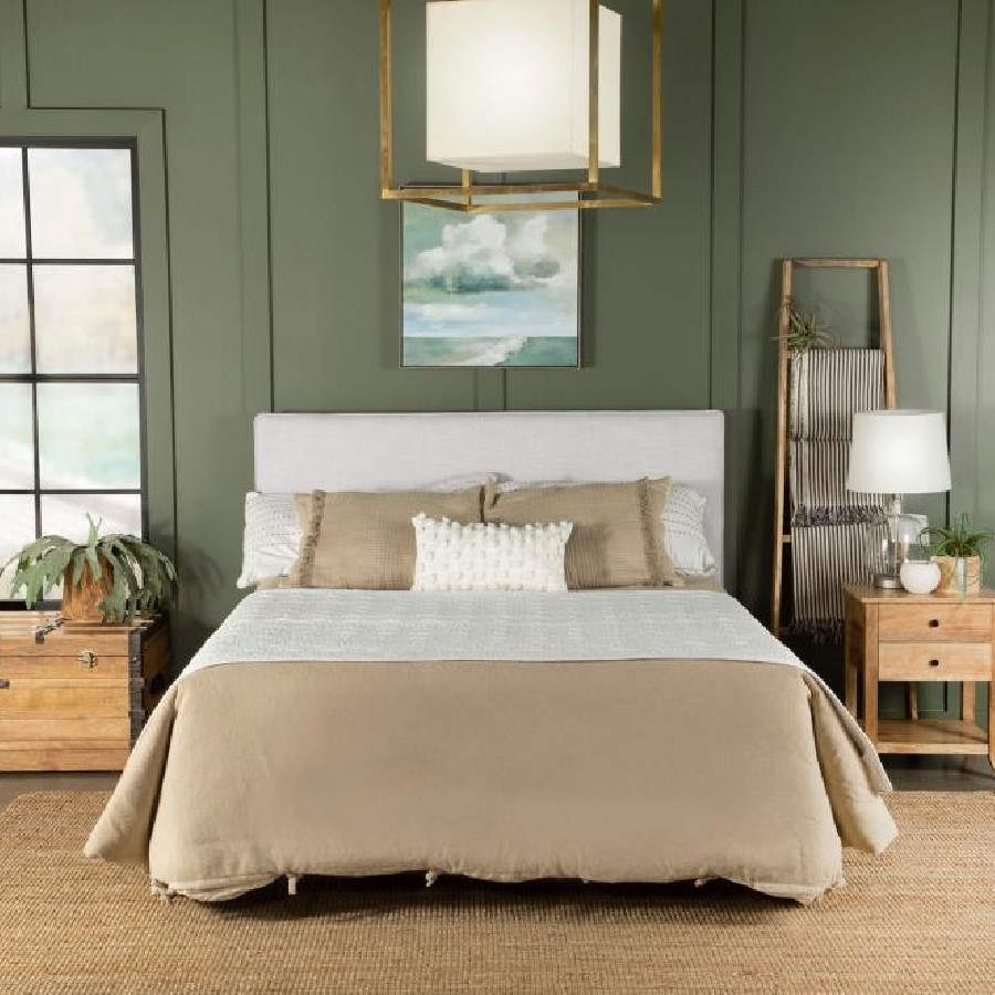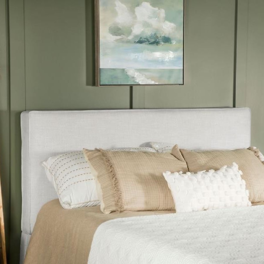 The exemplary and simple style of this classic headboard offers a perfect update to any bed. This upholstered headboard blends clean lines and dimensional upgrades to transform a bedroom into a haven for relaxation. Self-welt construction details add a sleek look to the outer border. Textured sand finish fabric wraps over the headboard, offering a modern look and a light, elegant palette that accommodates a variety of options for matching case pieces, beds, and accessories. Constructed of pine wood.