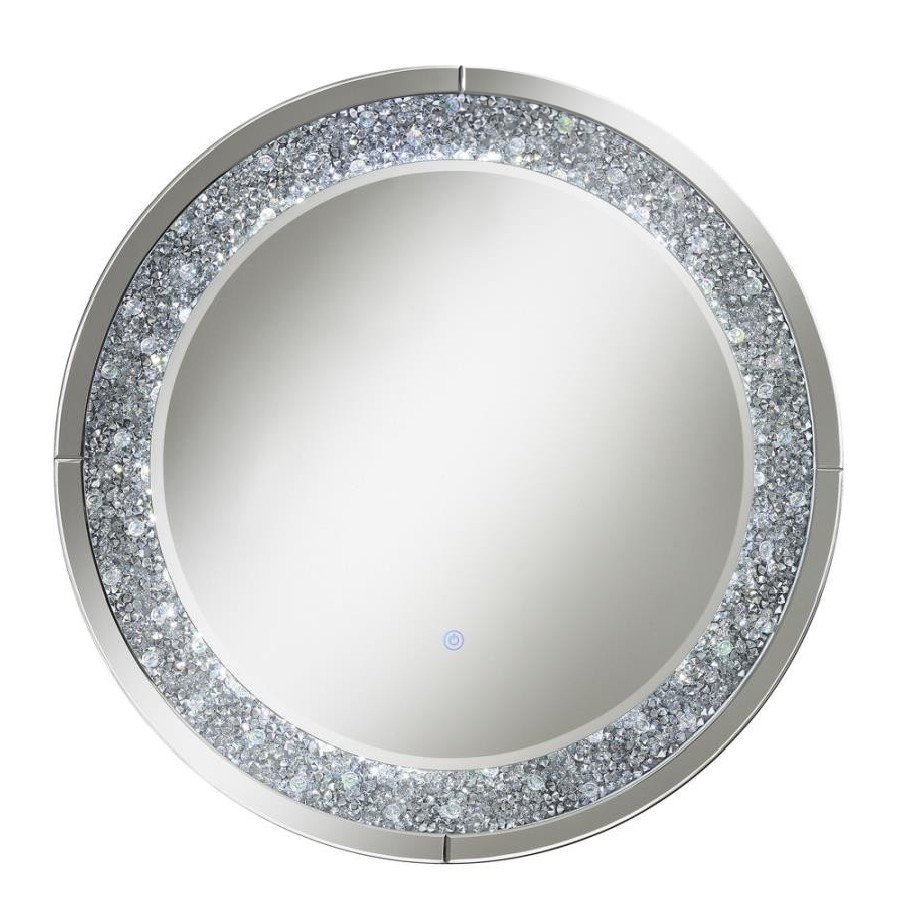 Accentuate your home with this cool, lively decorative wall mirror. The MDF and mirror construction brightens up a front hallway or walk-in closet. The silver hardware finish is highlighted by brilliant crystal accents that deliver glitz and glam. There's also LED lighting around frame to invigorate any space. With its distinctive approach and design, this decorative wall mirror ensures you always look your best.
