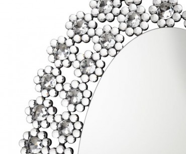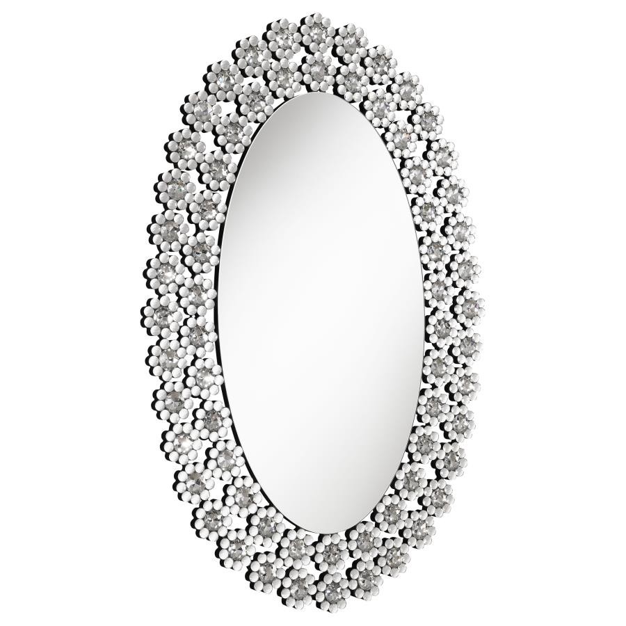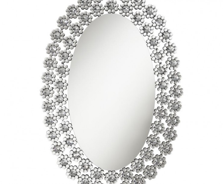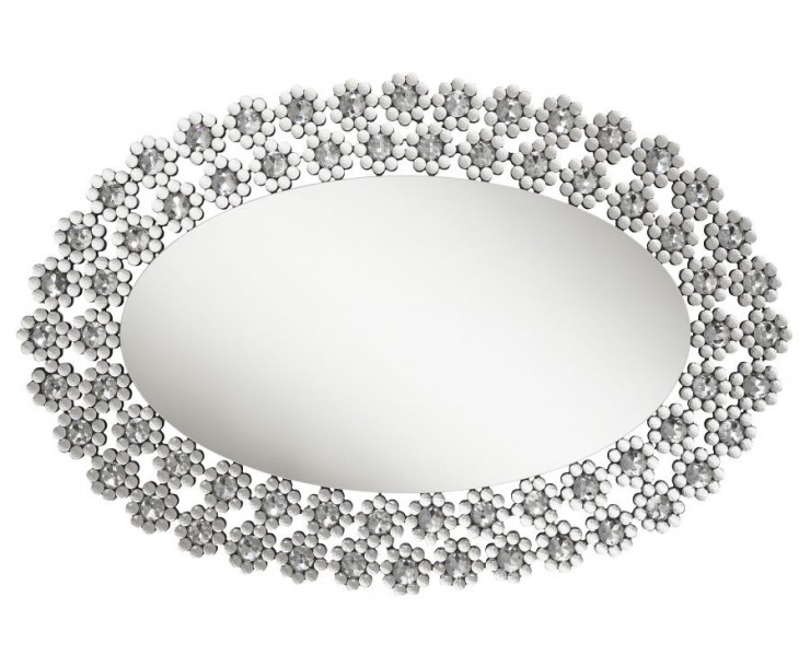 Colleen 31 x 47 Inch Oval Wall Mirror Crystal Flowers Silver