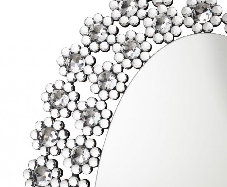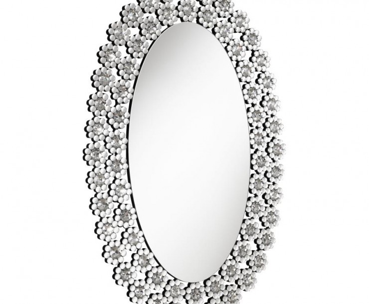 Radiate elegance with this striking oval wall mirror adorned in dazzling faux crystal blossoms. A stunning blend of modern glamour and floral charm, it brightens up any room with its reflective surface and sparkling frame. Perfect for entryways, bathrooms, or bedrooms, this mirror brings light, texture, and a touch of luxury to your décor.