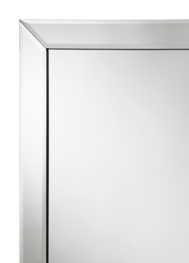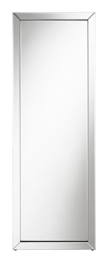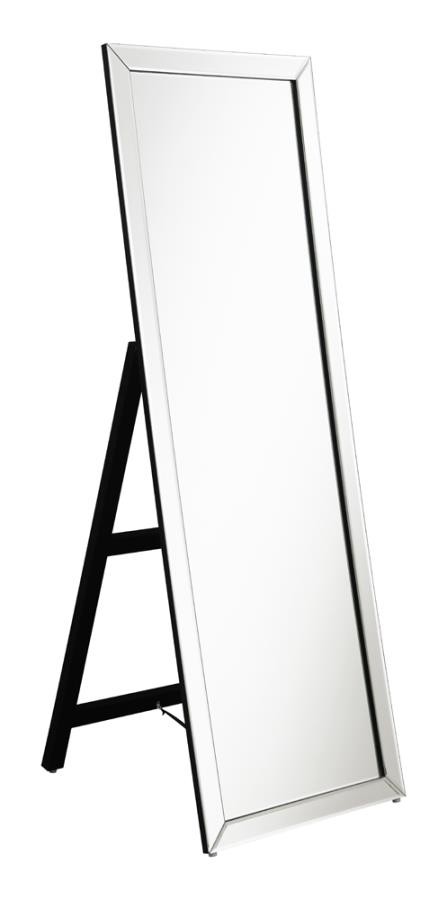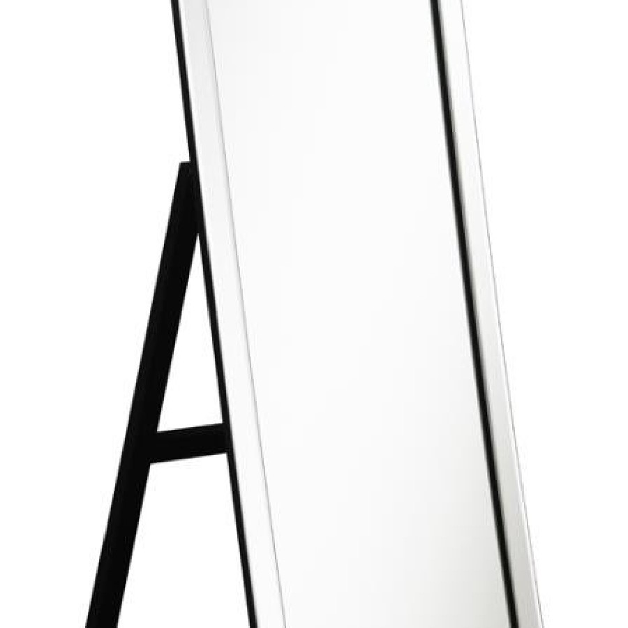 This standing mirror features a minimalist mirrored frame that adds brightness and clarity to any space. Its full-length glass offers a complete reflection, supported by a sturdy easel-style back for freestanding functionality. The clean lines and reflective surround provide a sleek, modern look that blends effortlessly into bedrooms, closets, or dressing areas. Designed for versatility, this floor mirror delivers both style and practical use.