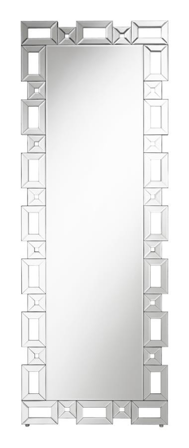 Tavin 24 x 65 Inch Geometric Frame Standing Mirror Silver