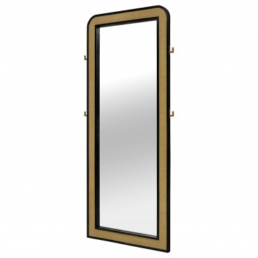 Elevate your bedroom or dressing area with this elegant full-length mirror, designed to bring both style and functionality to your space. The mirror features a sleek, rounded-edge frame finished in a sophisticated, textured material that adds a touch of warmth and refinement. Integrated hooks on the sides provide convenient storage for accessories, making it a versatile addition to your decor. Whether you’re checking your outfit from head to toe or simply adding a decorative element, this mirror enhances any room with its blend of practicality and chic design. Perfect for modern and transitional spaces, it’s a must-have for creating a polished look in your home.