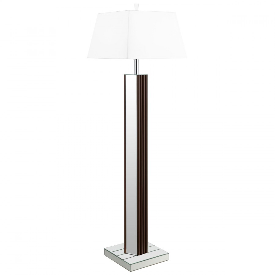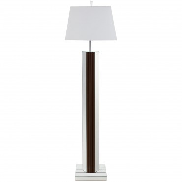 Introduce a dose of character and sophistication with a modern floor lamp. It boasts a chic towering silhouette, complete with a deep brown finish and scallop details that create a fresh touch of texture and dimension. Mirrored panels add contrast and bright reflectivity, while a mirrored base creates a sense of cohesion. The light bulb is an energy efficient 9-watt LED, creating warm illumination for tasks and ambiance. An angular shade completes the look with white fabric, offering timeless character to a compelling silhouette.