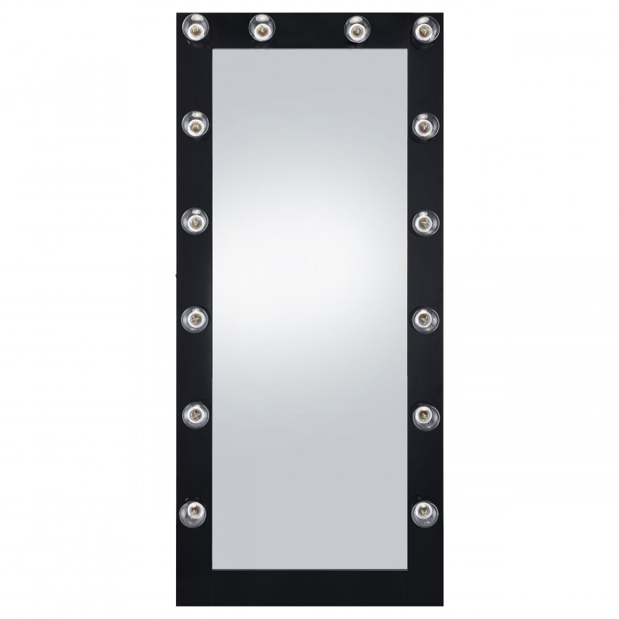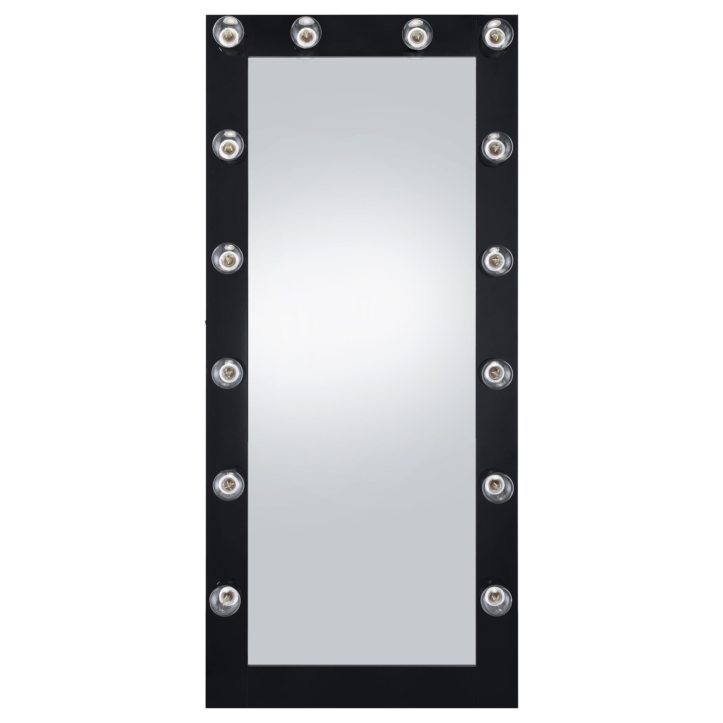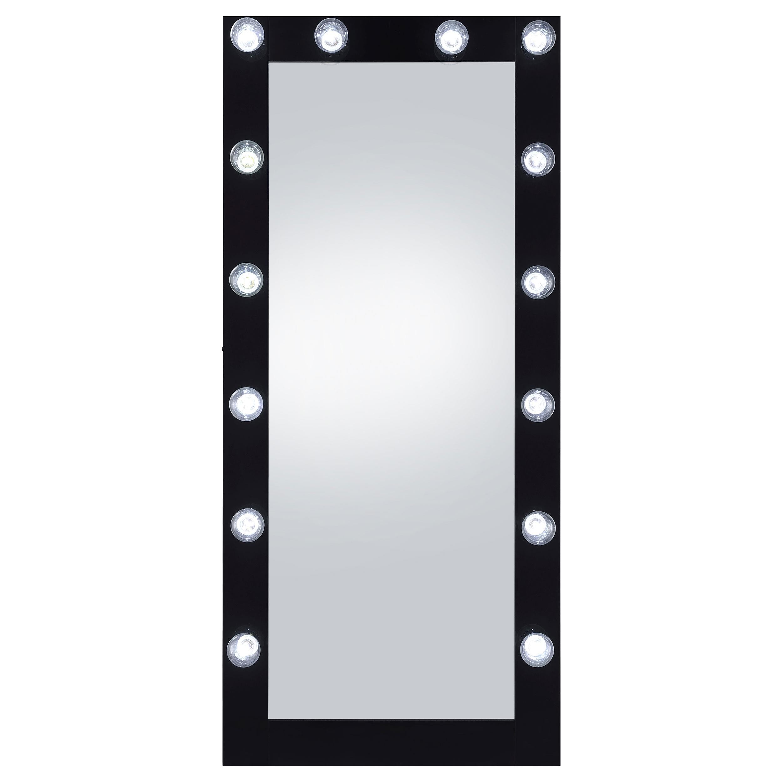 Zayan 32 x 71 Inch Floor Mirror LED Lighting Black Gloss