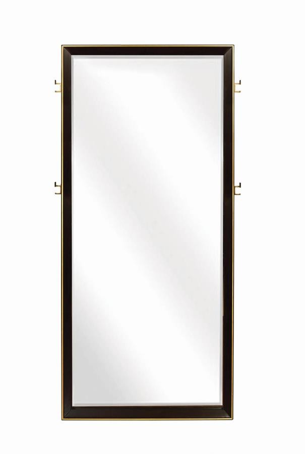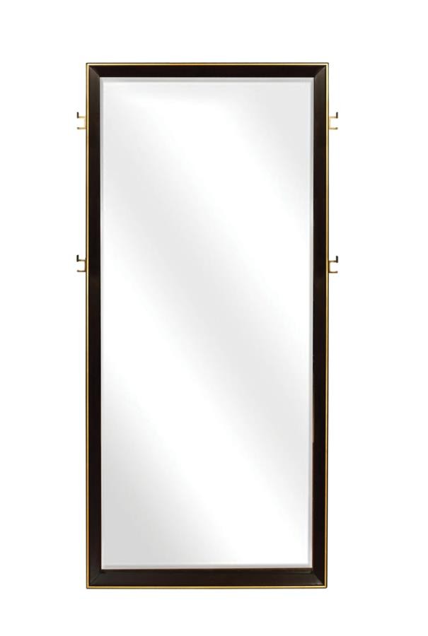 Introduce a retro feel in a modern bedroom with this stunning rectangular floor mirror. In a rich and warm smoke peppercorn finish, rich tones create a compelling visual. The simple and smooth frame enhances a sleek and structured effect, complementing other elongated design pieces in any design motif. Beautiful in a bedroom or at the end of a hallway, the mirror adds sleek style and rich color. Open up your space with the contrast between eye-catching reflective glass and understated deep, straight lines.