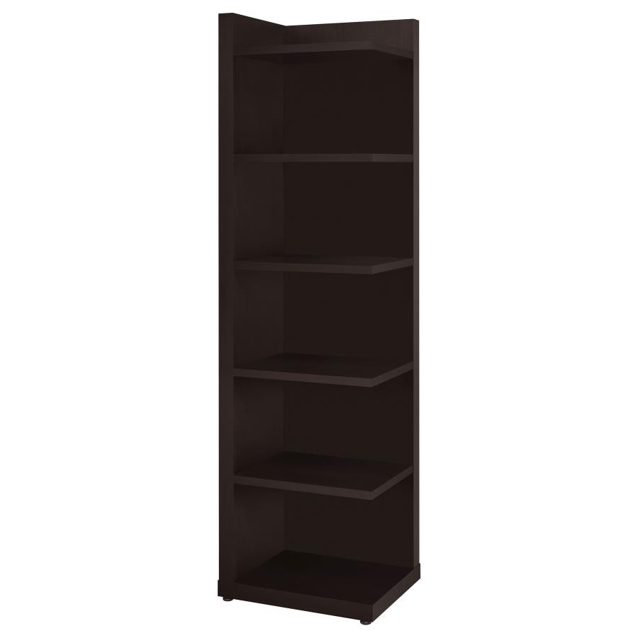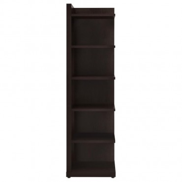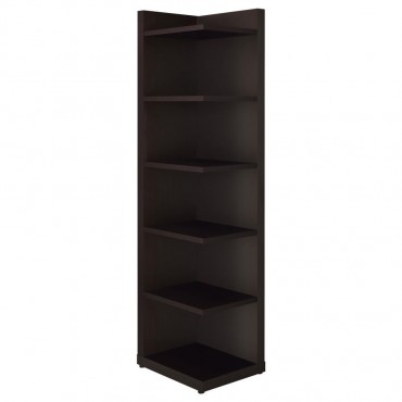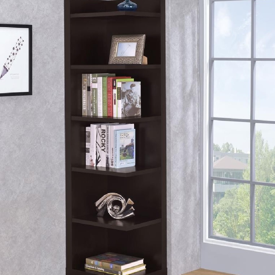 Display your book collection with style and pride. This bookcase features six convenient shelves to show off your personal library. Ideal for smaller spaces, it tucks neatly into a corner to free up precious square footage. A handsome cappuccino finish gives it a classically chic appearance. Crafted from durable MDF, particle board, and engineered veneer, this bookcase is strong, sturdy, and stunning.