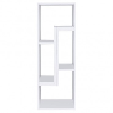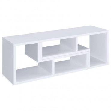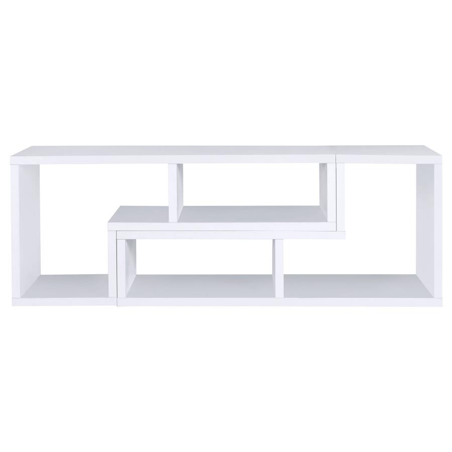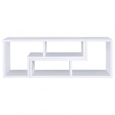Perfect for a variety of uses, this two-piece bookcase and TV console is fabulously versatile. It allows you to switch between various bookcase and TV stand configurations for your convenience. Bold, L-shaped shelves are arranged in striking geometric designs for a modern look. A white finish enhances its contemporary appeal. Crafted from top quality materials, this bookcase is sturdy, stylish, and smart.