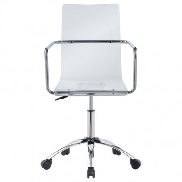 Showcase modern sophistication with this ultra-chic office chair designed to elevate any workspace. A clear molded acrylic seat and back create a stunning, minimalist aesthetic, while the chromed metal base offers both durability and shine. Smooth caster wheels and adjustable seat height provide functional ease, making this chair as practical as it is stylish.