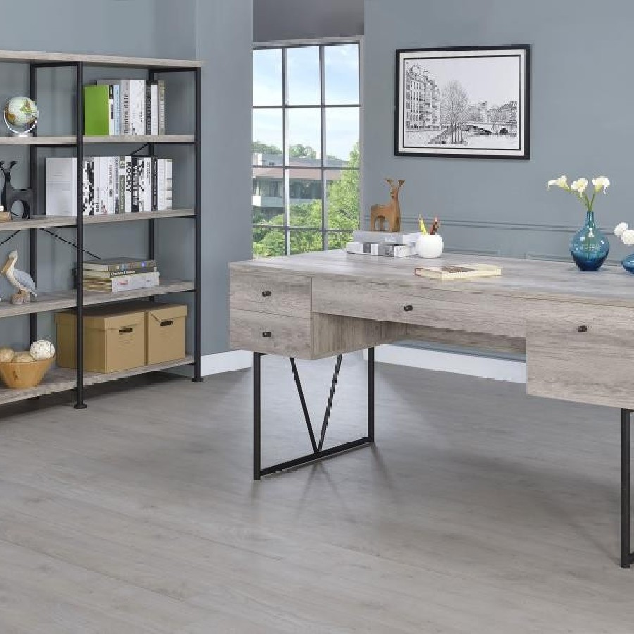 Analiese 63-inch 4-shelf Double Bookshelf Grey Driftwood