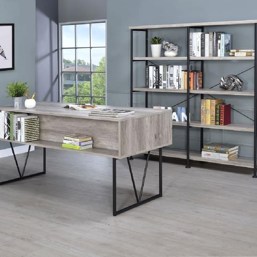 Embrace a traditional look with contemporary upgrades. Choose this bookcase to organize accents and books in a transitional space. Minimalist styling reflects a classic dynamic reflecting a hint of industrial aesthetics. Find plenty of room on four side shelves to display books and decor. Select from finishes that suit your space.