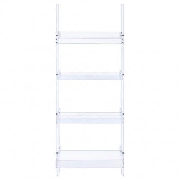 Bring a chic, airy touch to your living room with this clear acrylic ladder shelf that merges form and function. Its four open tiers offer ample space for showcasing books, décor, or multimedia items. Lightweight yet sturdy, this modern bookcase allows natural light to flow through, maintaining a spacious feel. Use it as a sleek display shelf or multimedia shelf, and enjoy its crisp look that blends effortlessly with contemporary or eclectic styles.