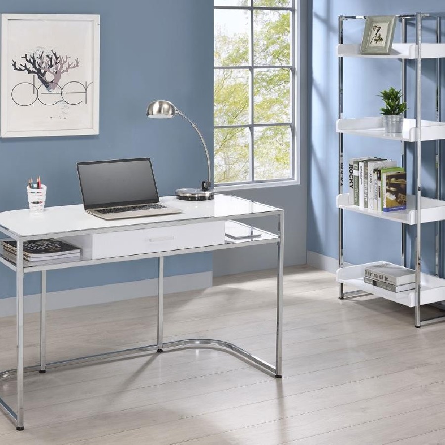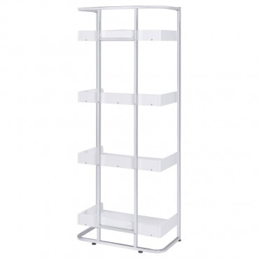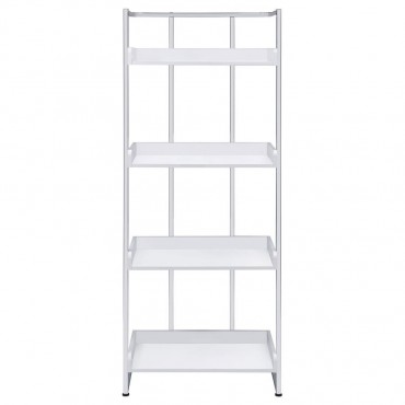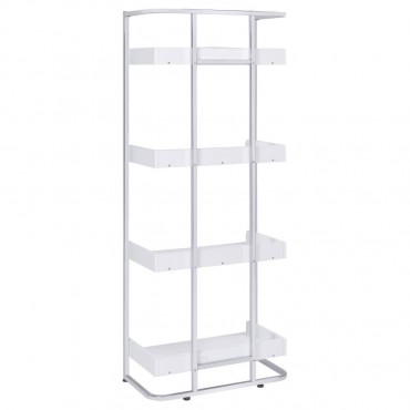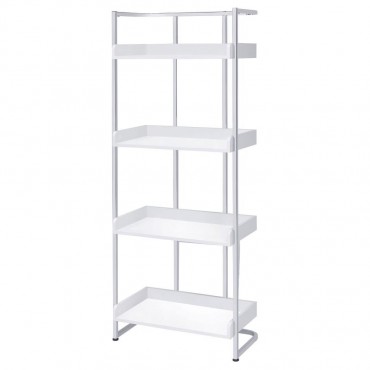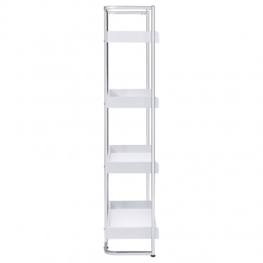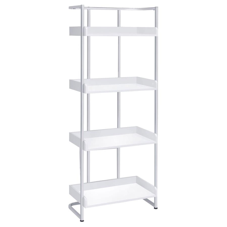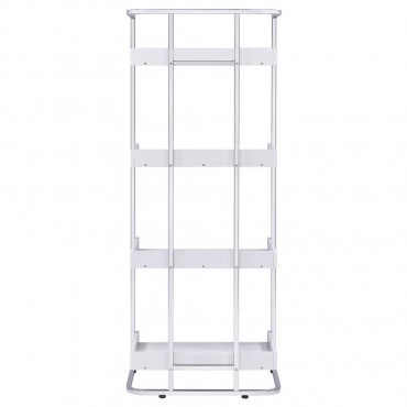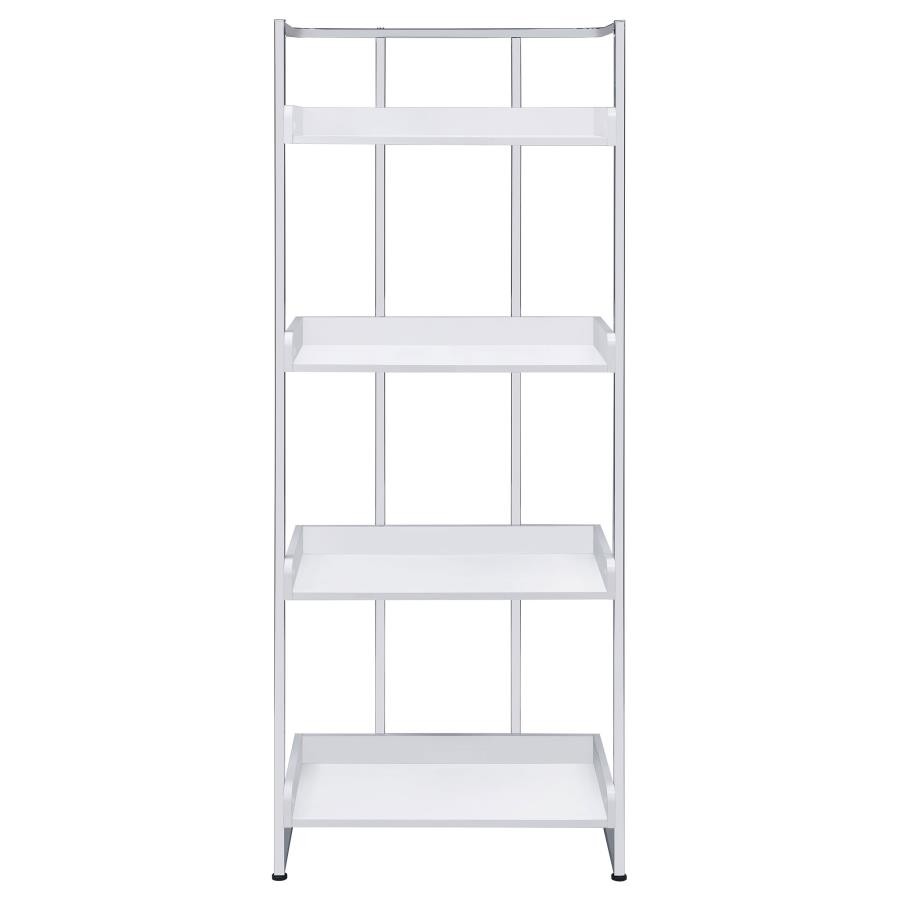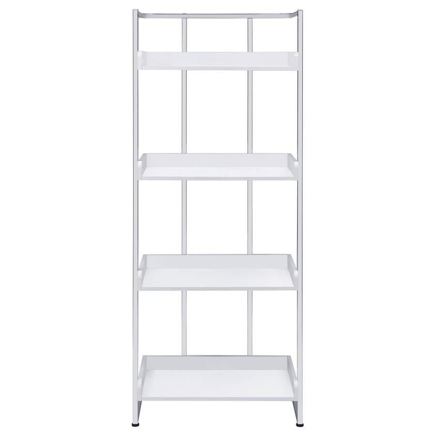 Ember 68-inch 4-shelf Bookshelf White High Gloss and Chrome