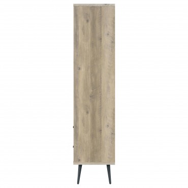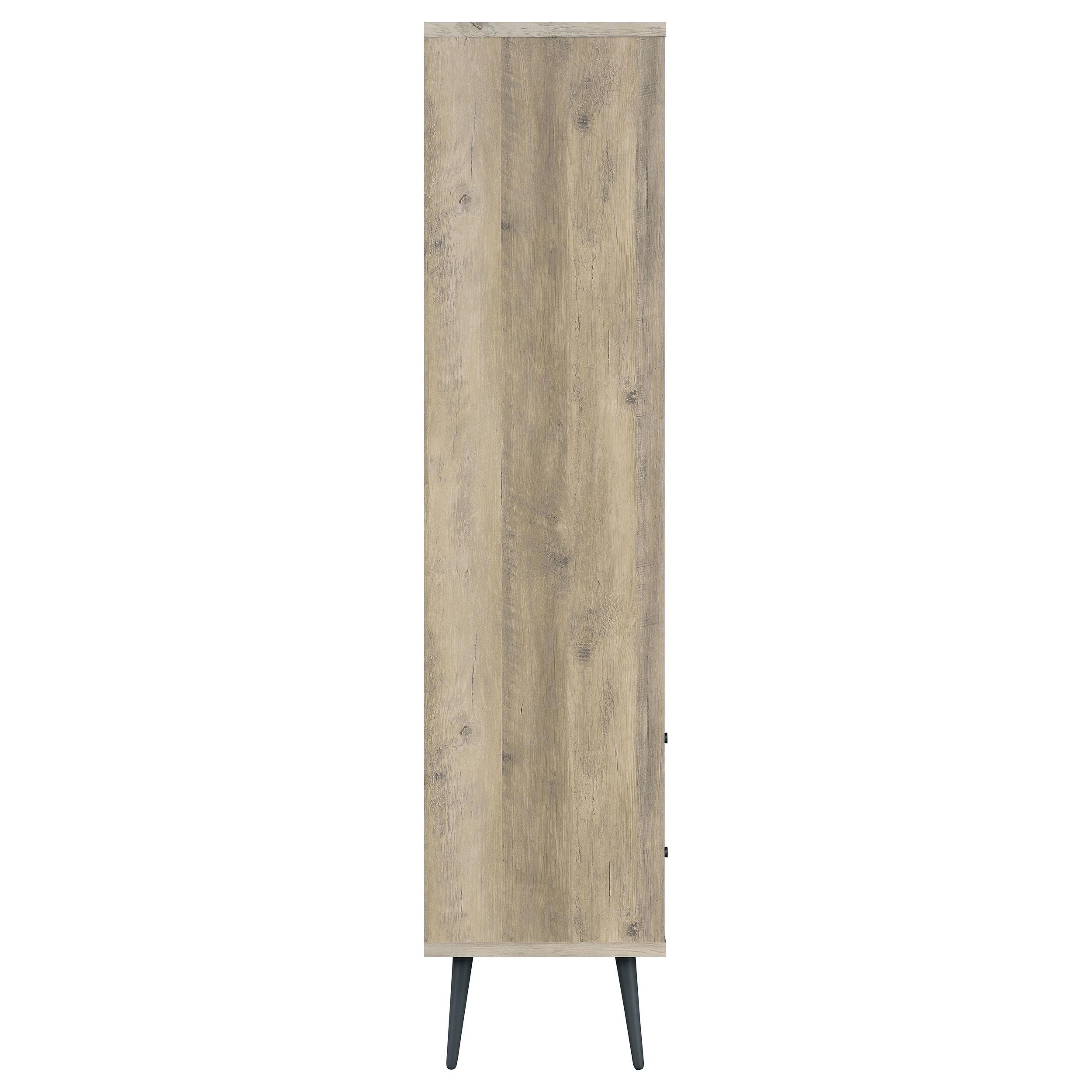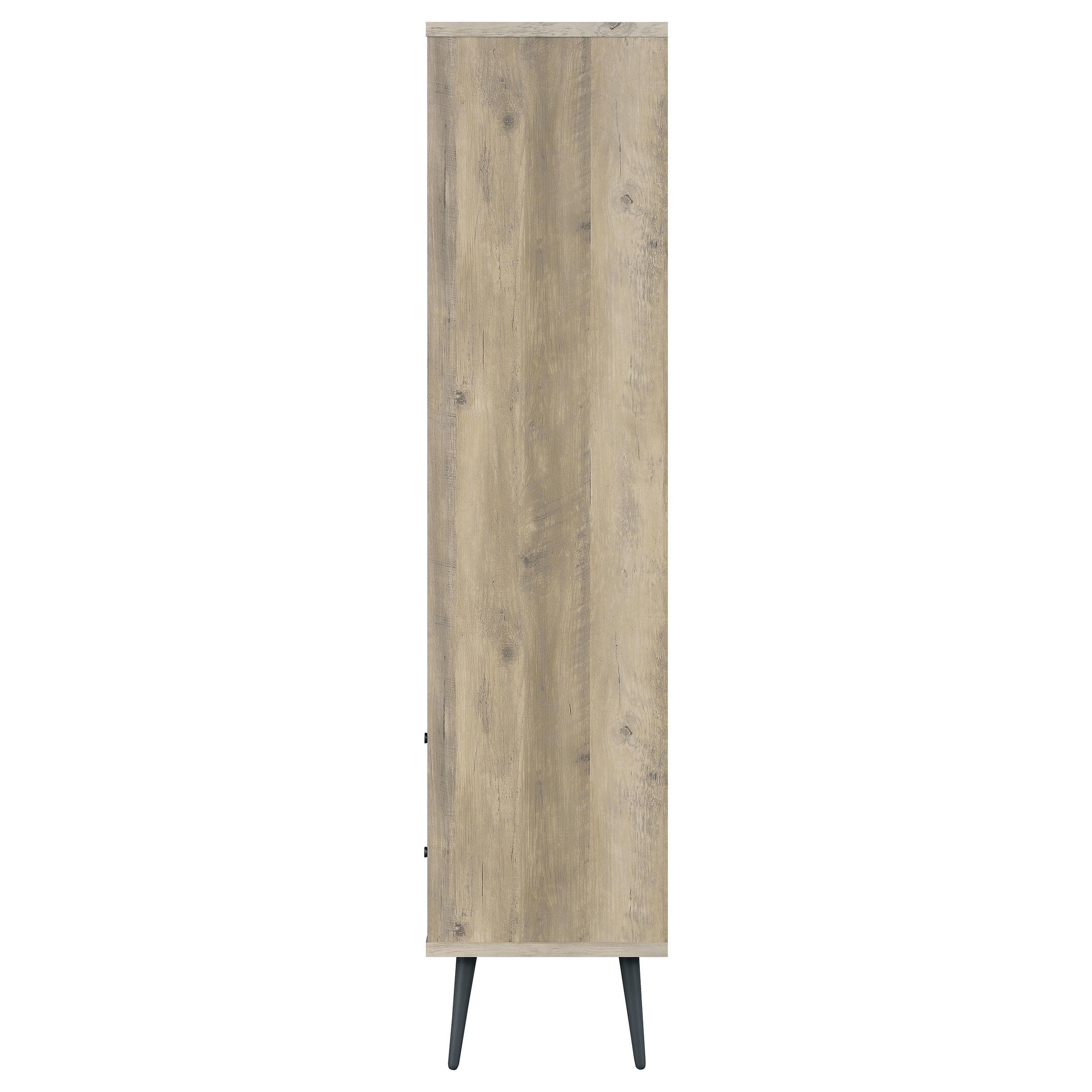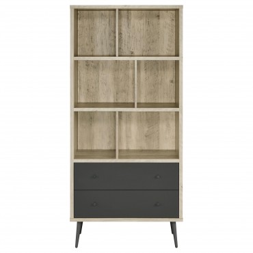 A nod to Euro design concepts adds a Scandinavian vibe to a bookcase you’ll want to consider. Make room for those scattered books and magazines in a central unit with a rustic feel and high vertical profile that saves space. This bookcase is made of antique pine finished rubberwood, hollow board, and assorted materials with a grain pattern creating eco-inspired organic beauty. Your living room or bedroom is the perfect spot for a bookcase with three alternated shelves featuring vertical dividers separating books, décor, and plants. Two lower drawers increase storage space, as splayed, tapered gray finish metal legs add a familiar style.