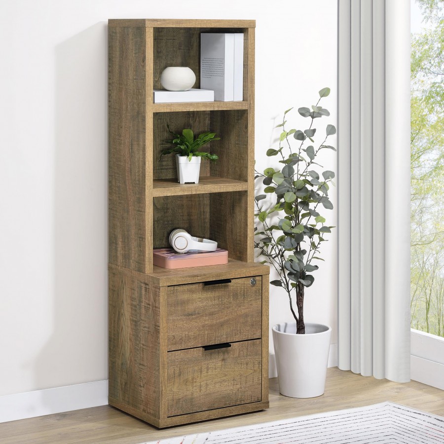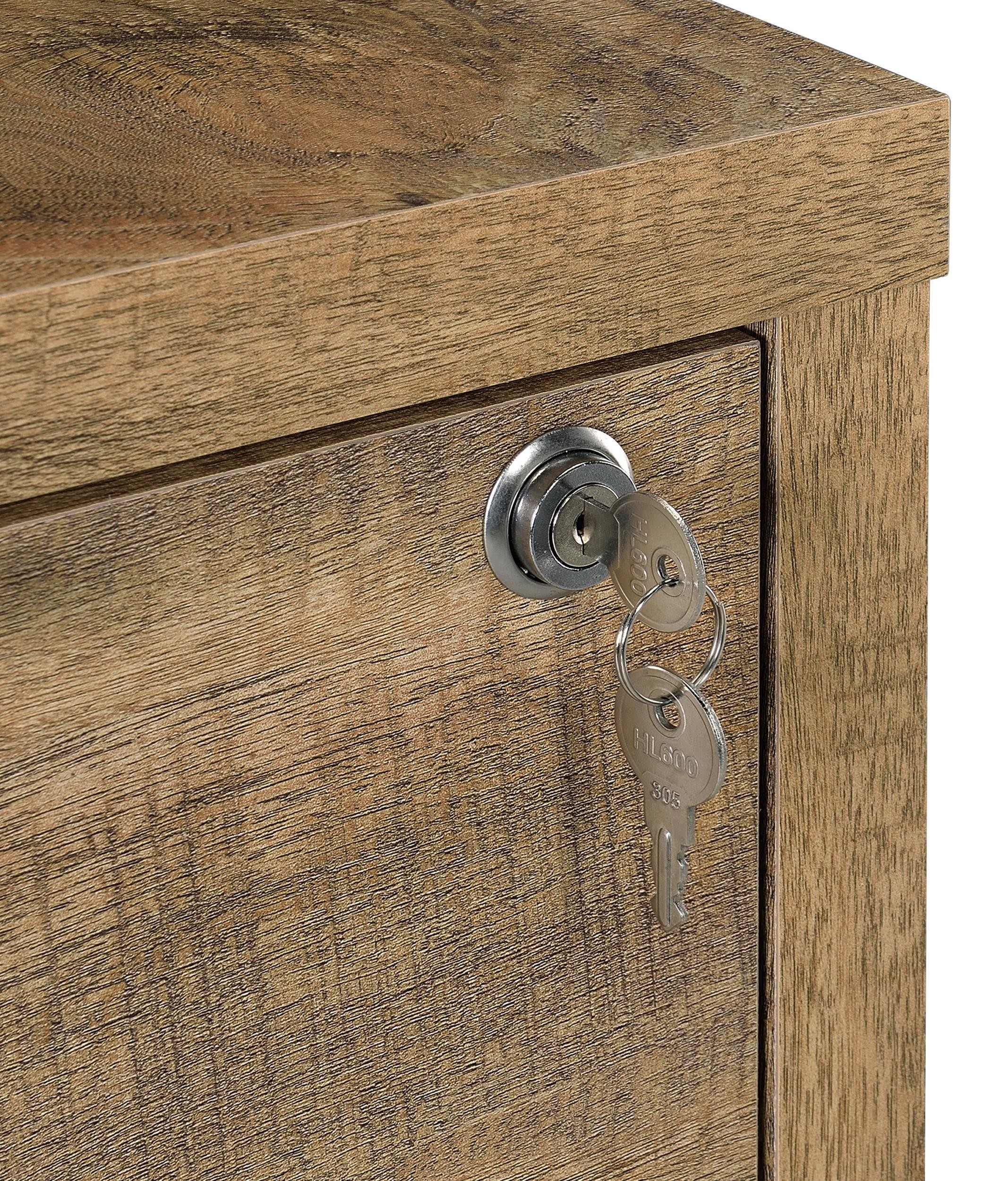 Enhance your home organization with this multifunctional bookcase, featuring a wood-inspired finish. Equipped with three open shelves and two drawers, it offers a mix of display and hidden storage options. The top drawer includes a secure locking mechanism for valuables, while an integrated dual USB charging outlet with USB-A and USB-C ports provides convenient power for phones and devices. Crafted from engineered wood with a scratch-resistant laminate veneer, this bookcase combines durability and modern functionality.