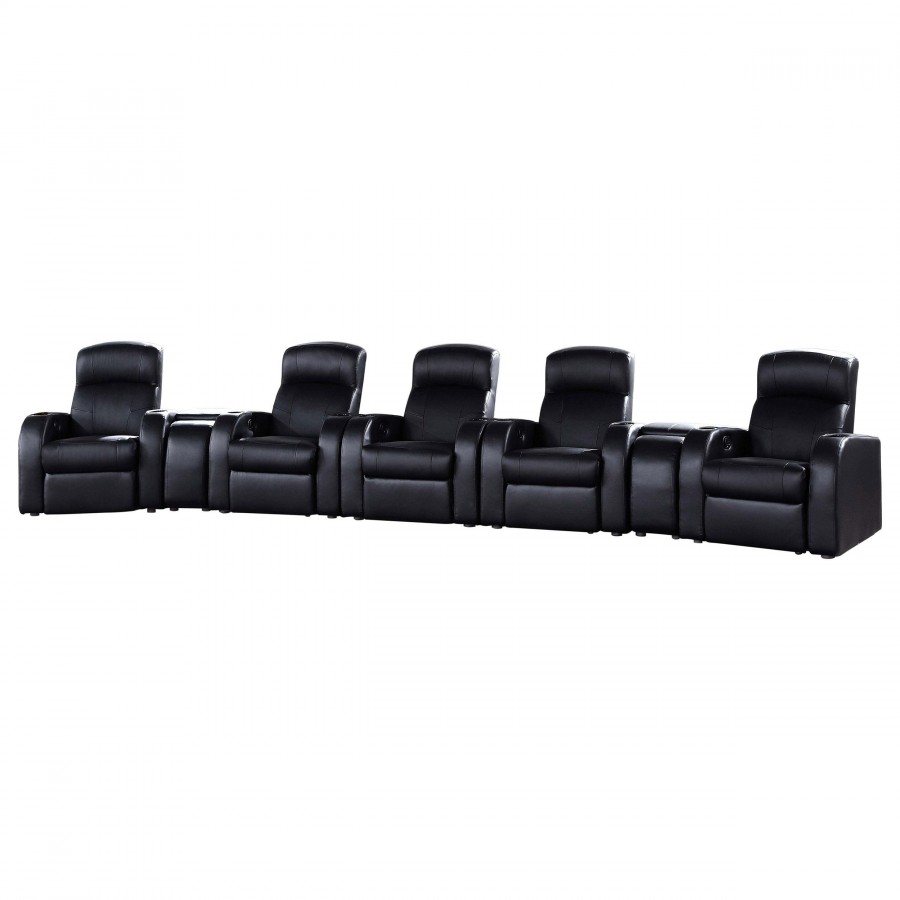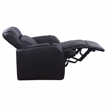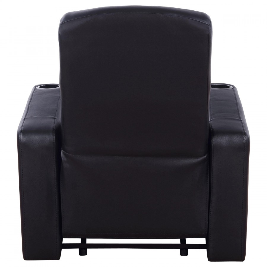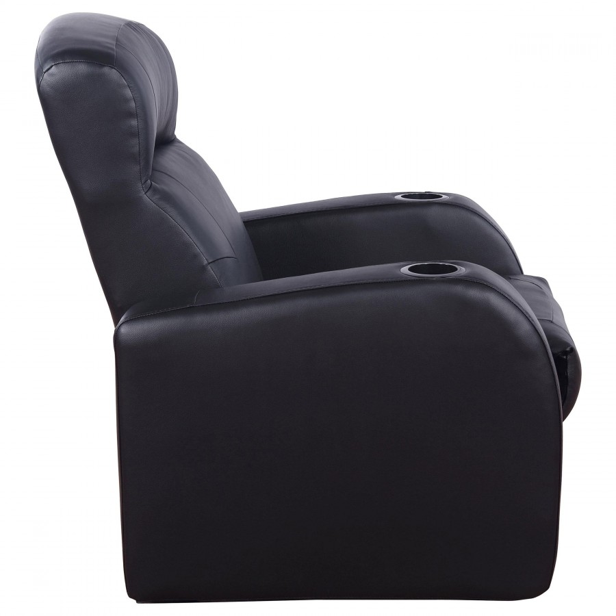 Experience cinematic luxury at home with this sleek home theater seating collection. Each recliner is upholstered in smooth black top grain leather everywhere the body touches, offering both elegance and durability. Designed with high backs, supportive pocket coil seating, and wall-hugger mechanisms, the recliners maximize comfort and save space. Built-in cupholders provide convenience, while optional wedge consoles add soft-closing storage for remotes and accessories. Modern stitching and rounded track arms complete the refined look, making this collection the ultimate in home entertainment seating.