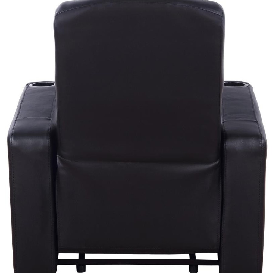 Experience cinematic luxury at home with this sleek home theater seating collection. Each recliner is upholstered in smooth black top grain leather everywhere the body touches, offering both elegance and durability. Designed with high backs, supportive pocket coil seating, and wall-hugger mechanisms, the recliners maximize comfort and save space. Built-in cupholders provide convenience, while optional wedge consoles add soft-closing storage for remotes and accessories. Modern stitching and rounded track arms complete the refined look, making this collection the ultimate in home entertainment seating.