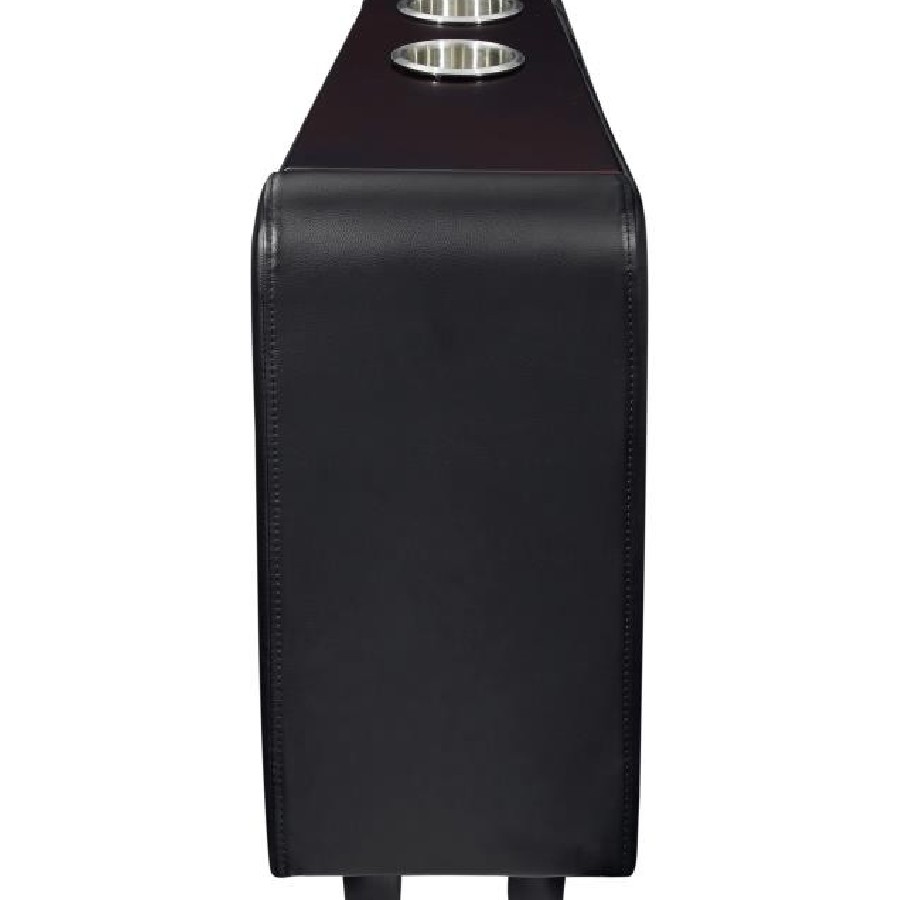 Transform your living room into a cinematic retreat with this modern home theater seating collection. Upholstered in smooth black leatherette, each push back recliner offers plush headrests, supportive armrests, and pocket coil seating with a cool gel memory foam topper for lasting comfort. Removable stainless steel cupholders built into the wedge consoles provide convenience and easy maintenance. Sleek stitching details and a tailored silhouette add contemporary refinement, while sturdy construction ensures durability for years of entertainment.