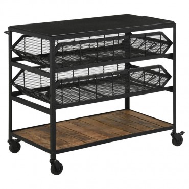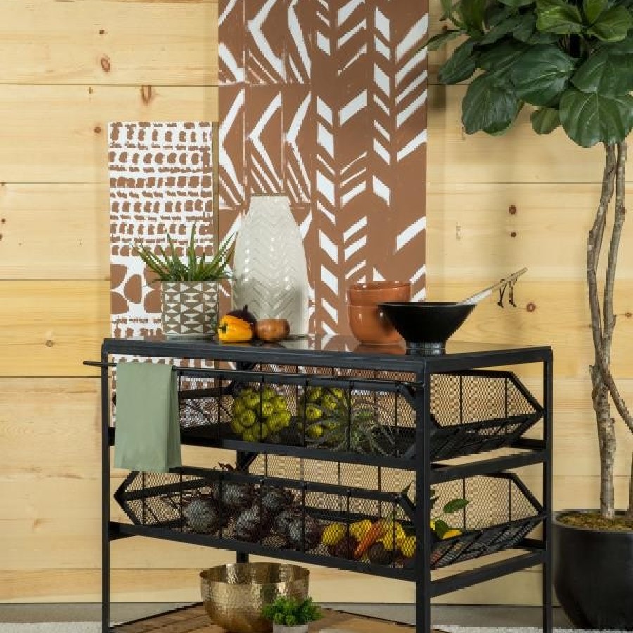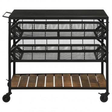 Combining industrial style with practical functionality, this versatile storage cart features three spacious shelves for effortless organization. The natural-finish mango wood shelves contrast beautifully against the black mesh metal frame, creating an urban-inspired aesthetic. Designed for flexibility, this cart can function as a stationary storage piece or a rolling serving unit, thanks to its smooth-gliding, lockable wheels for easy placement. Whether used in a kitchen, home office, or bathroom, this multi-functional cart brings industrial charm and efficiency to any space.