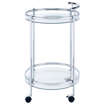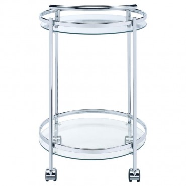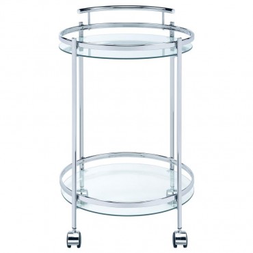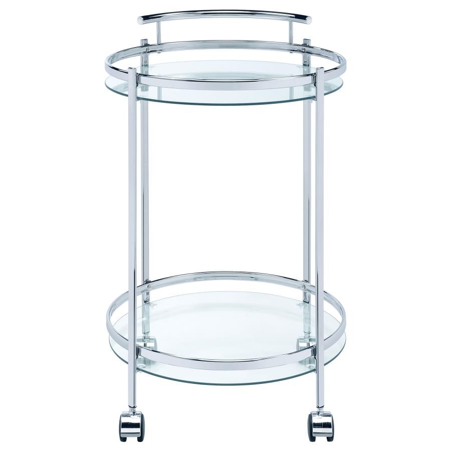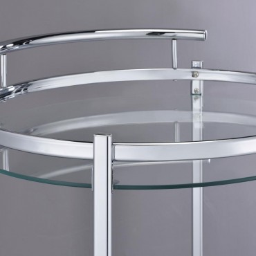 Chrissy Round Glass Shelf Metal Bar Cart Chrome
