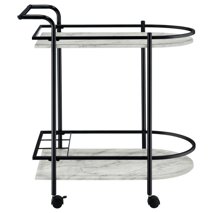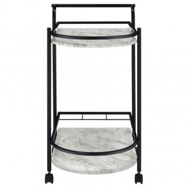 Desiree 2-tier Faux Marble Shelf Metal Bar Cart Black