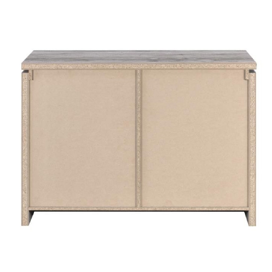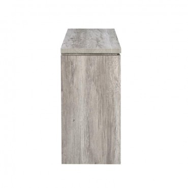This storage cabinet features a clean-lined silhouette with industrial-inspired hardware for a functional, modern-rustic look. Crafted from engineered wood with a scratch-resistant and eco-friendly laminate veneer, it showcases a grey driftwood finish that mimics natural wood grain. Behind two doors are four interior cubbies that provide versatile storage for shoes, accessories, or everyday essentials—ideal for entryways, living areas, or compact spaces.