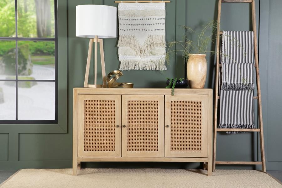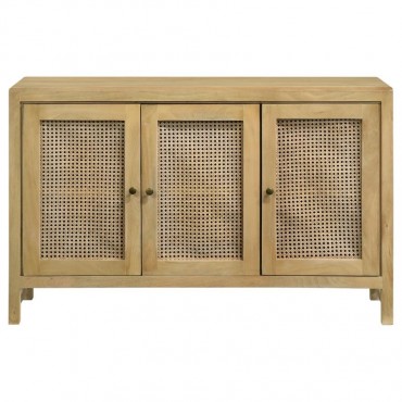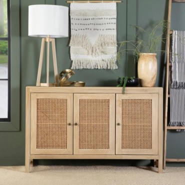Zamora 3-door Wood Accent Cabinet with Woven Cane Natural