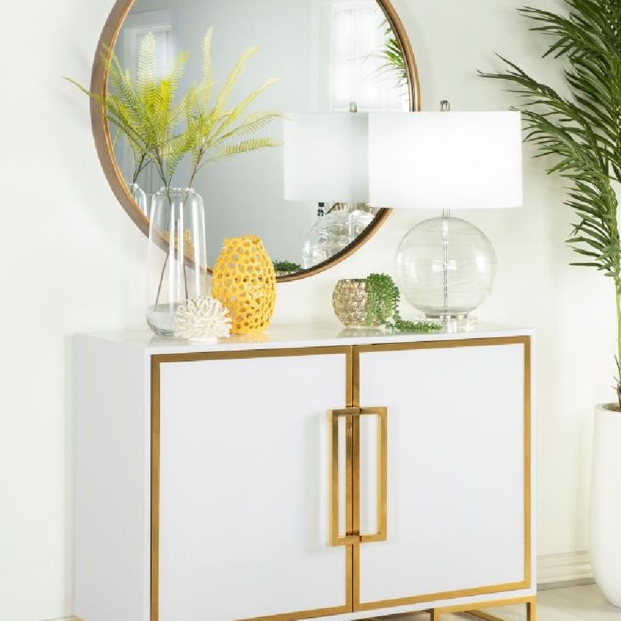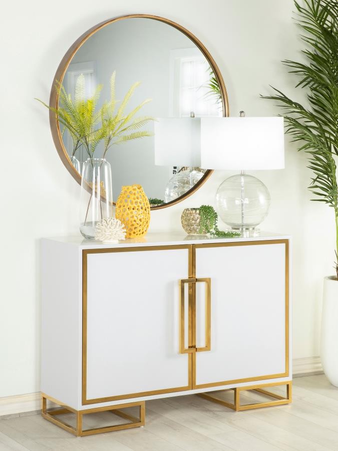 Elsa 2-door Wood Storage Accent Cabinet White and Gold