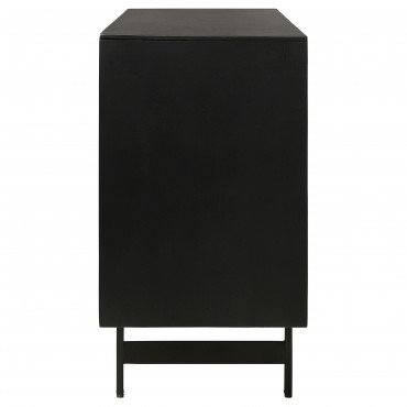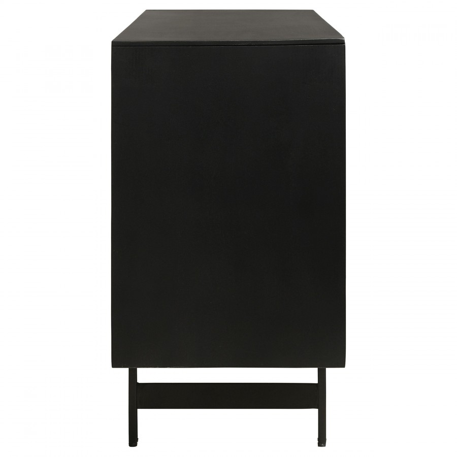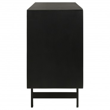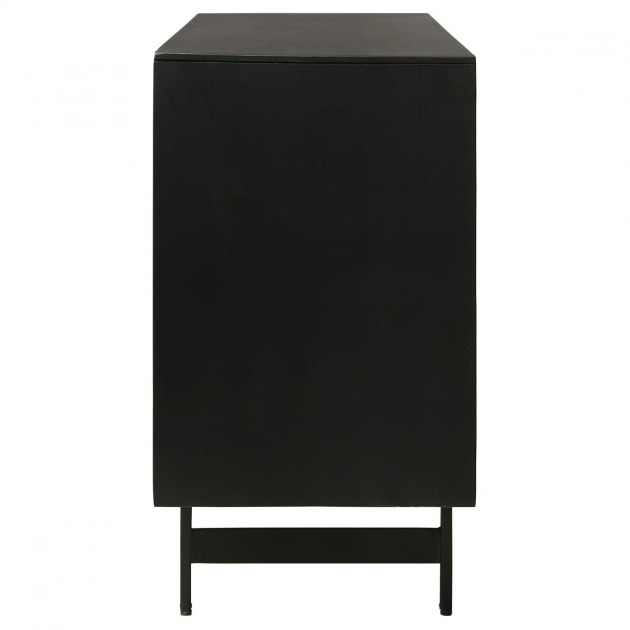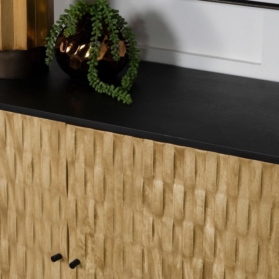 Expertly carved from robust mango wood, this accent cabinet flaunts a captivating 3D tile pattern on its door. The natural finish enriches its depth, complemented by the contrasting black top and sides, infusing a touch of modern flair. This piece seamlessly marries artistry with functionality, making it an indispensable addition for contemporary homes.