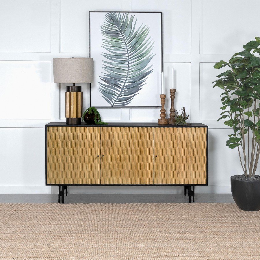 Aminah 3-door Wood Accent Cabinet Natural and Black