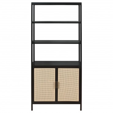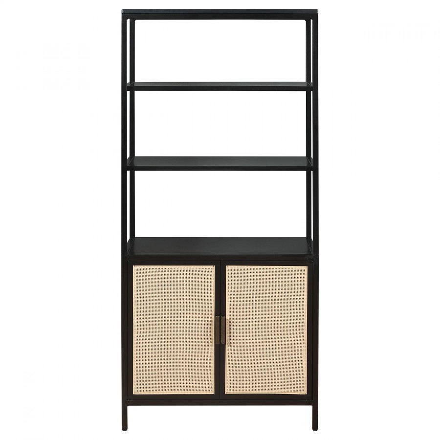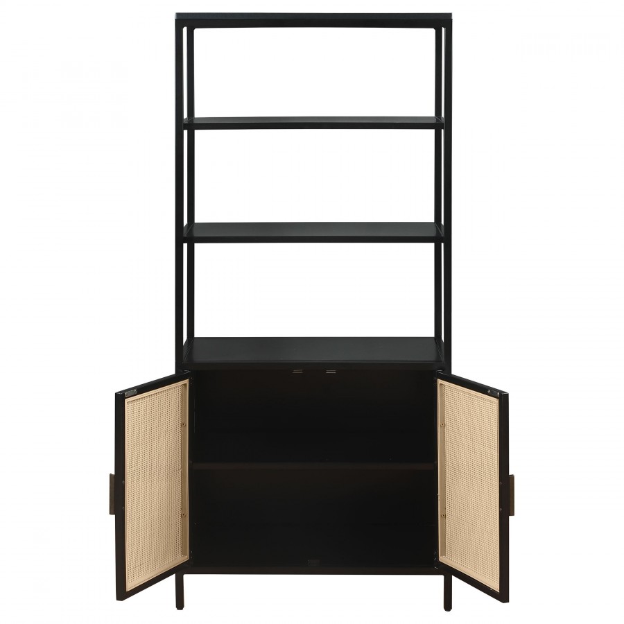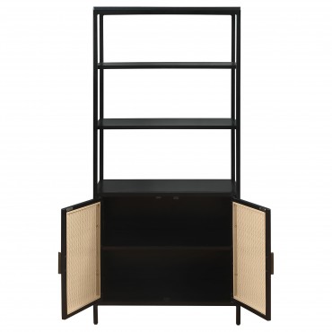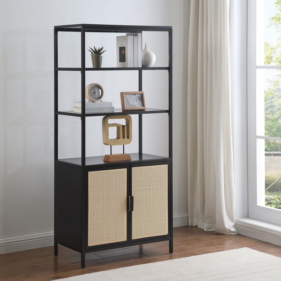 Amherst 3-shelf Radio Weave Cane Metal Accent Cabinet Black