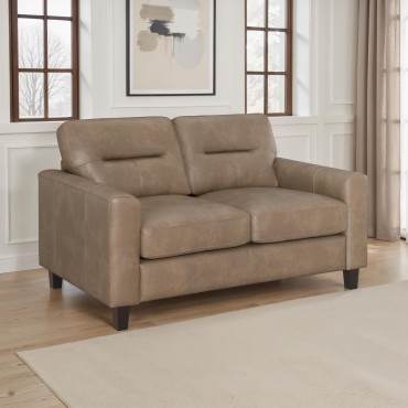 Scotland Faux Leather Upholstered Track Arm Loveseat Brown